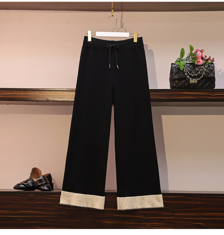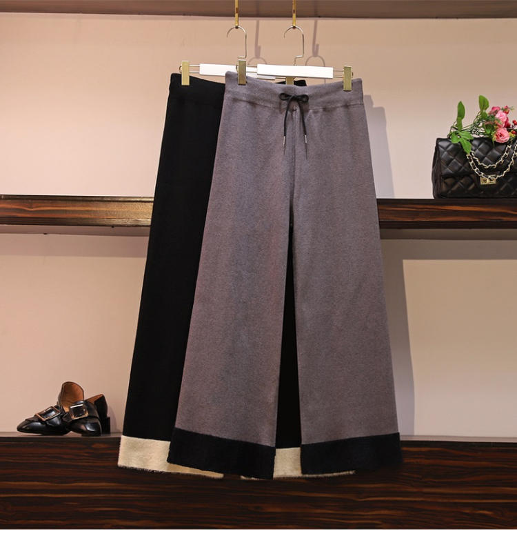>> 實拍加大碼針織闊腿褲女顯瘦秋冬新款胖mm休閒加厚墜感寬鬆直筒褲