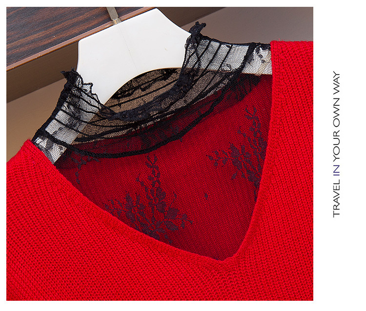 >> 實拍新款大碼女裝微胖mm假兩件蕾絲拼接針織毛衣收腰洋氣連衣裙