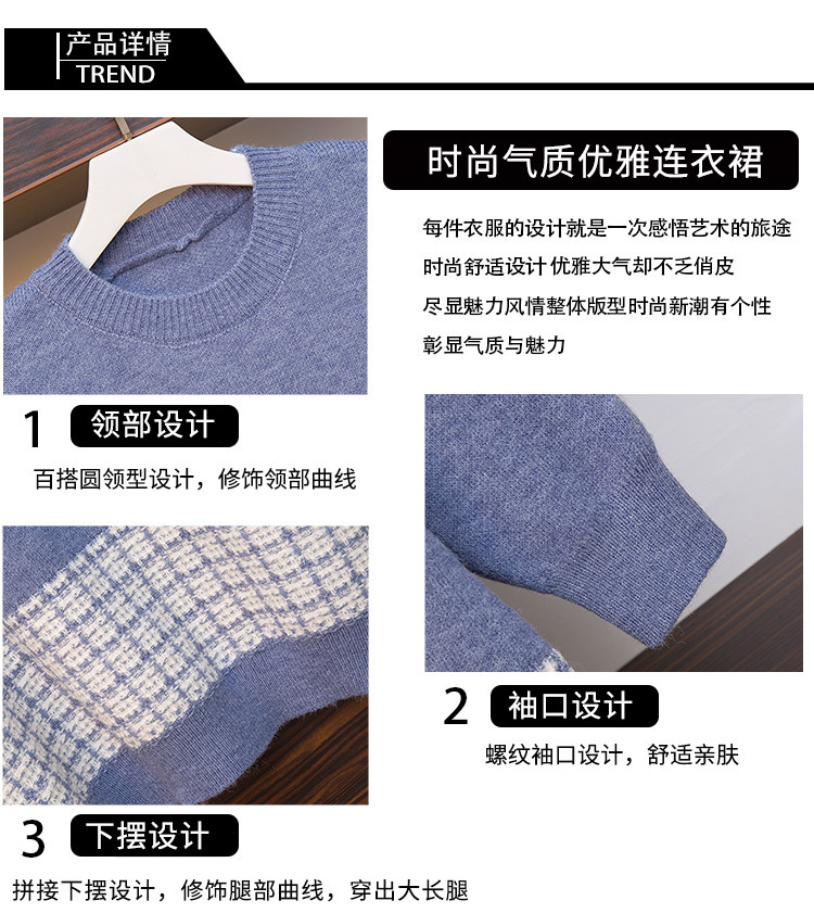 >> 實拍新款大碼女裝微胖mm圓領套頭毛衣裙寬鬆中長款洋氣針織連衣裙