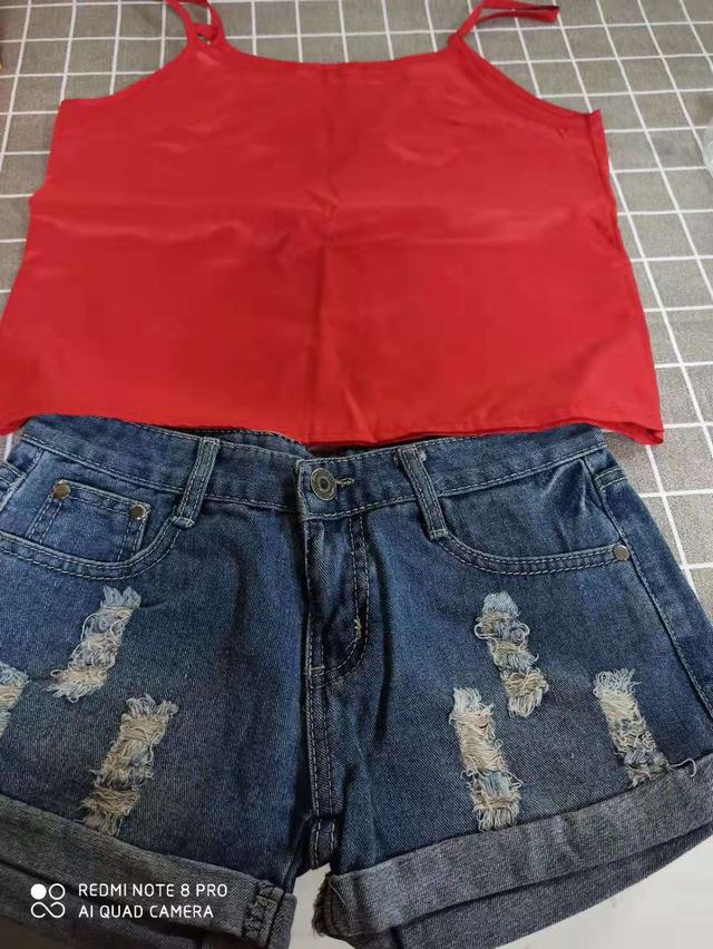 牛仔短褲+揹心
