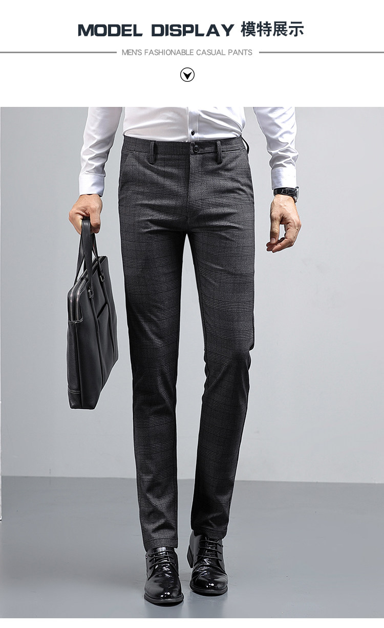 >> 新款男士休閒褲 韓版小直筒商務休閒褲男彈力時尚格子褲秋季夏款