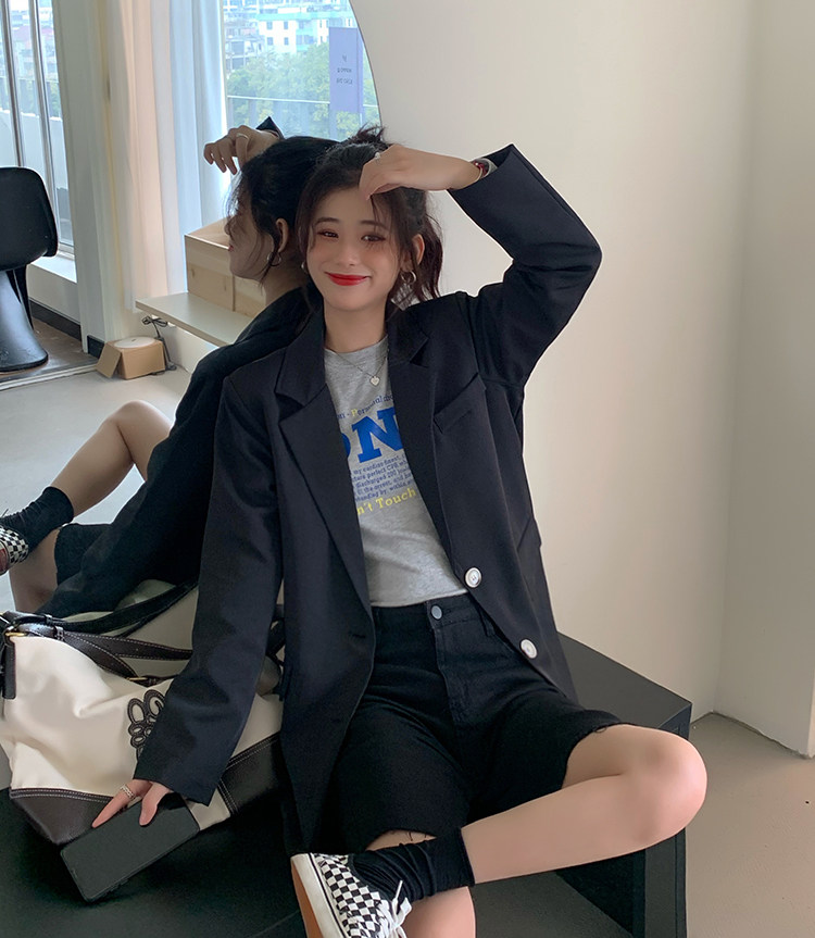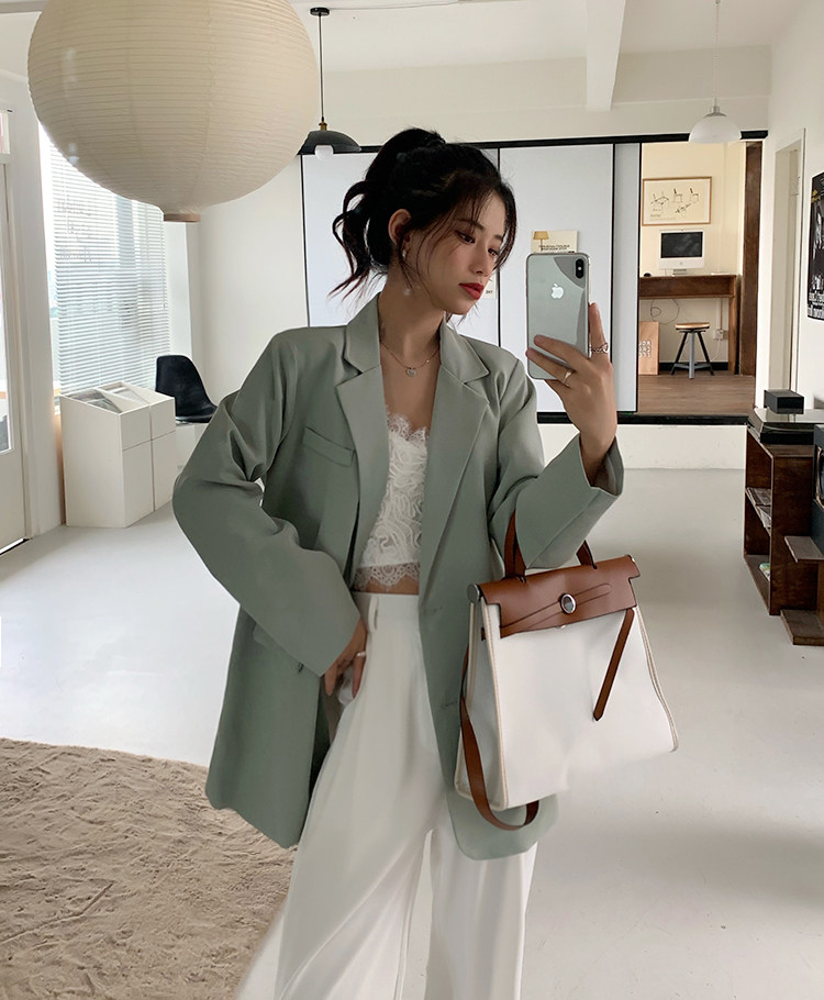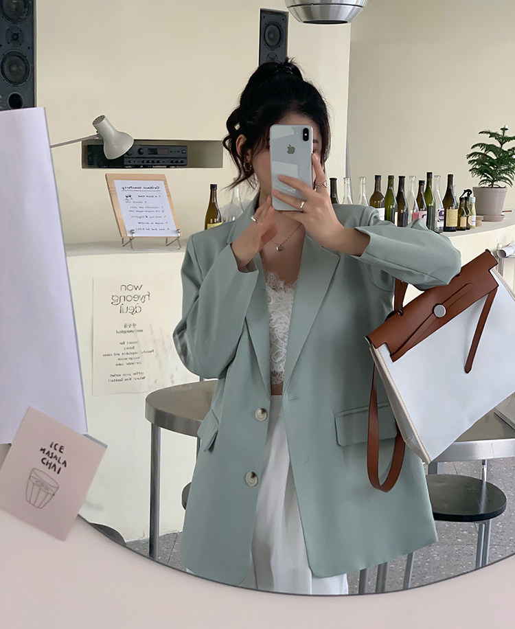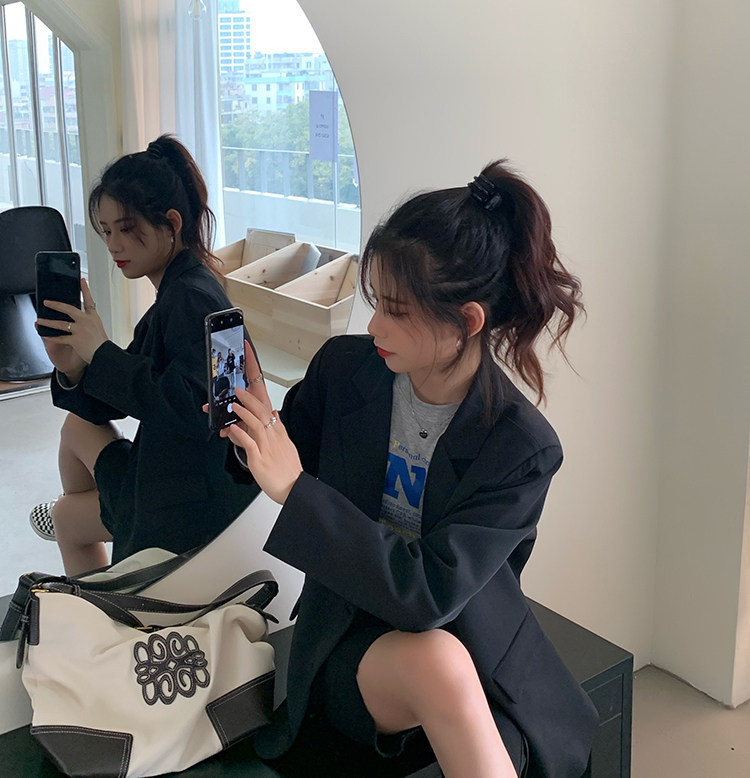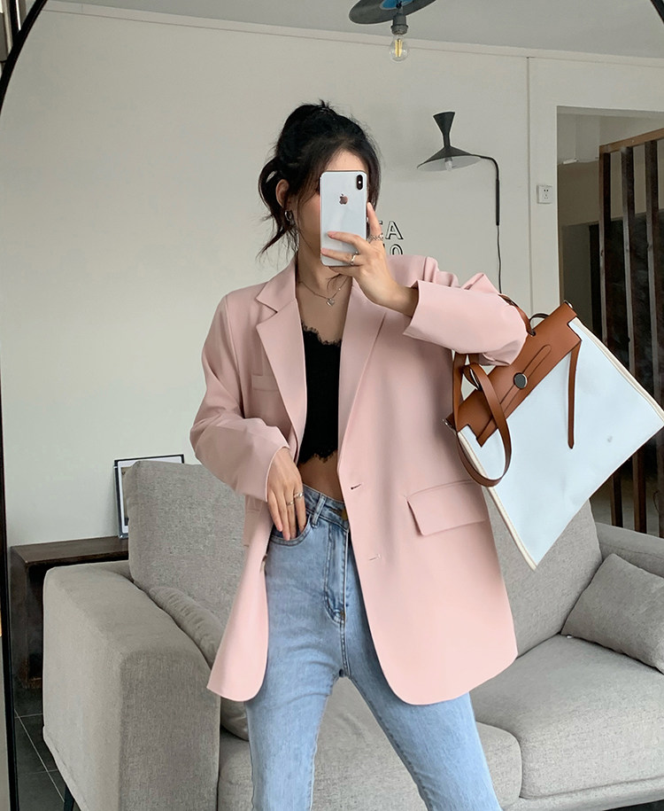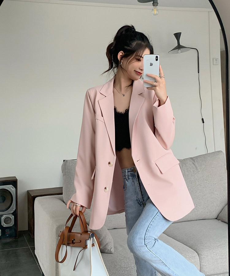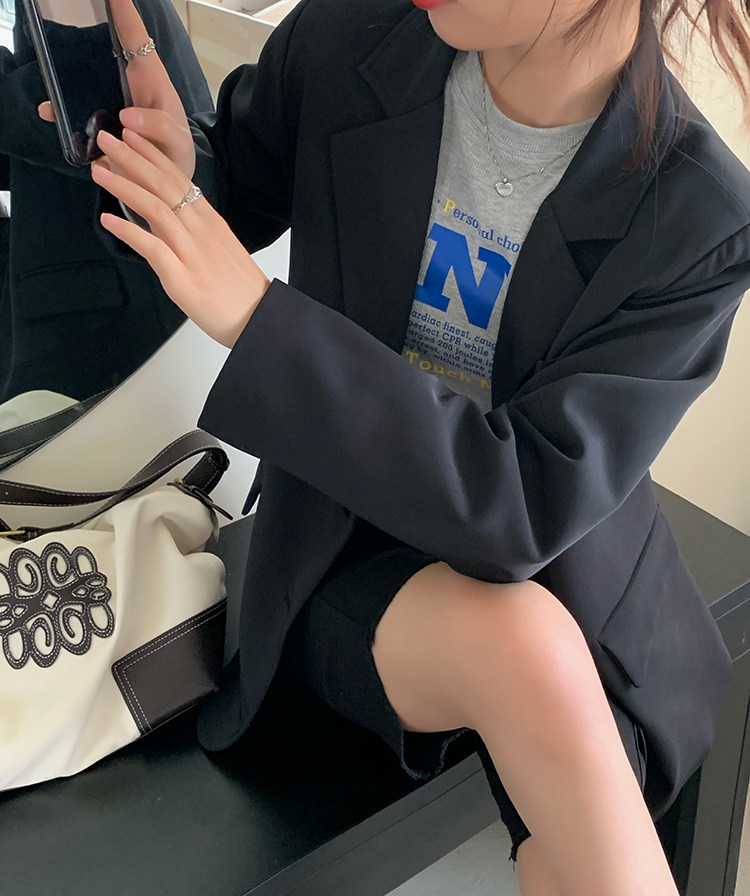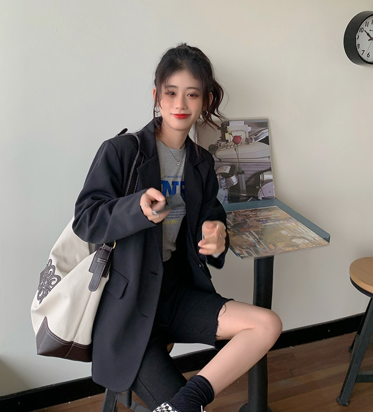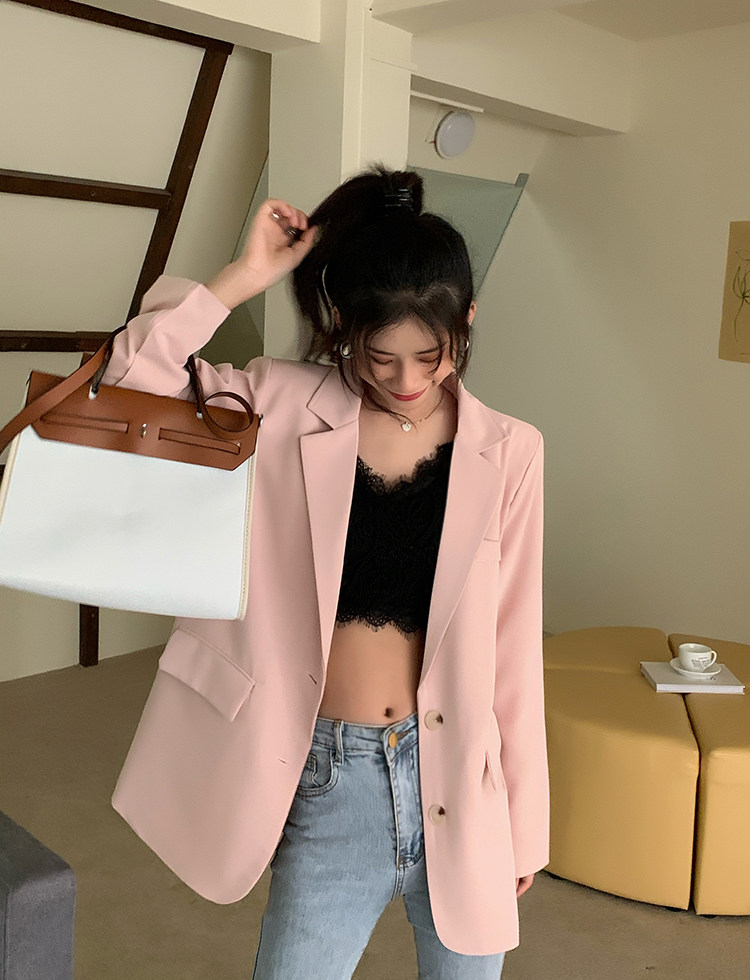 >> 實拍實價2022春季新款高級感寬松西裝外套女搭配設計感女 有墊肩