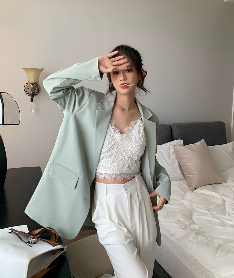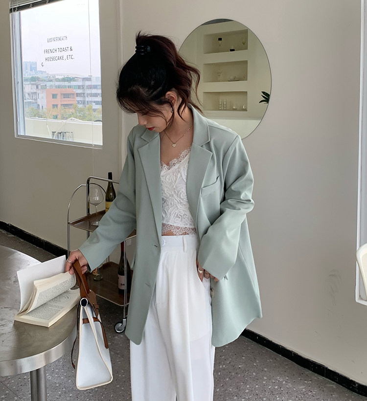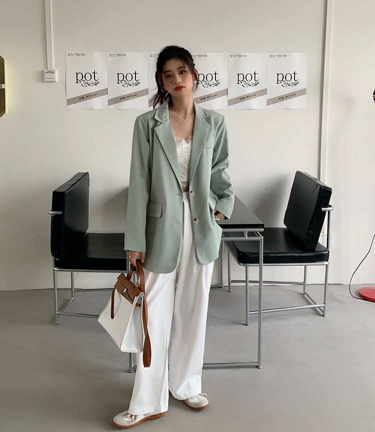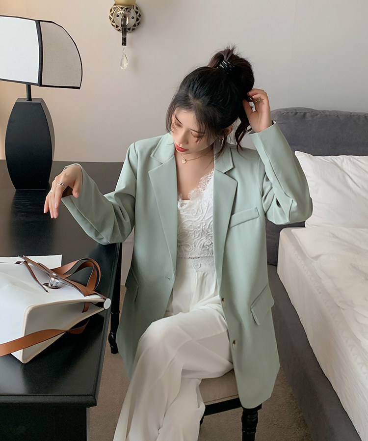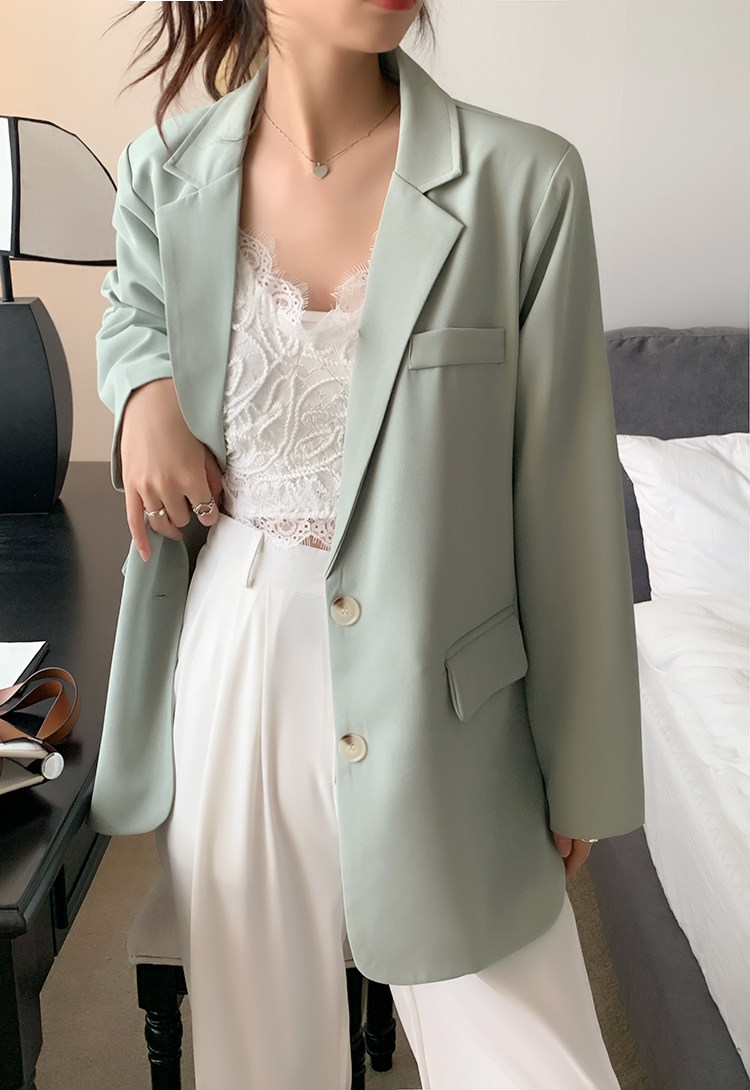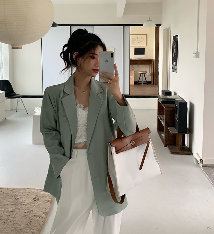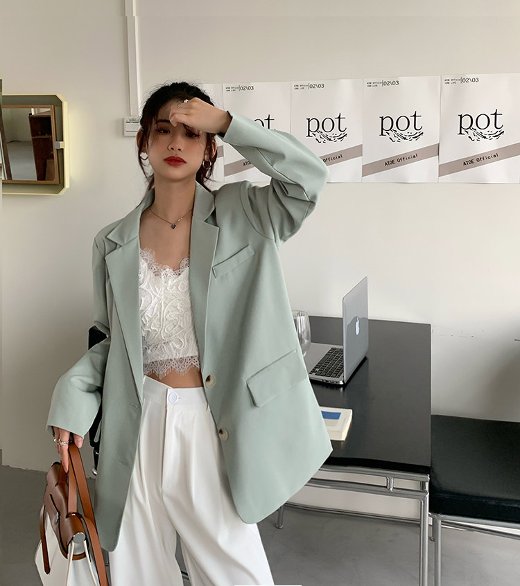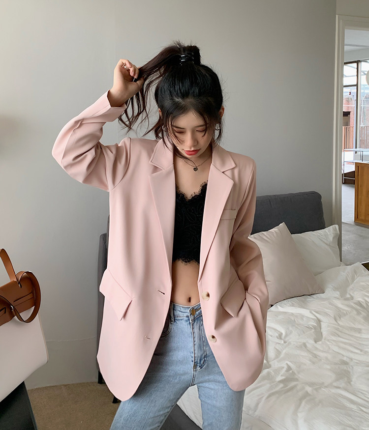 >> 實拍實價2022春季新款高級感寬松西裝外套女搭配設計感女 有墊肩