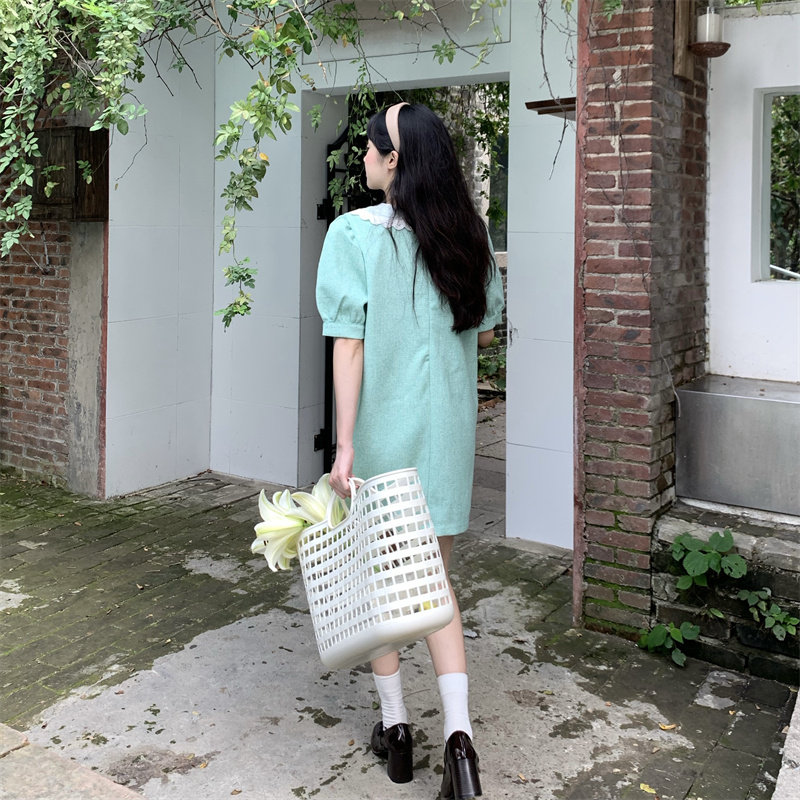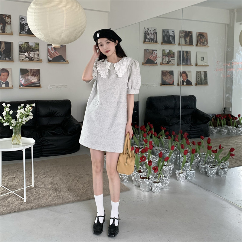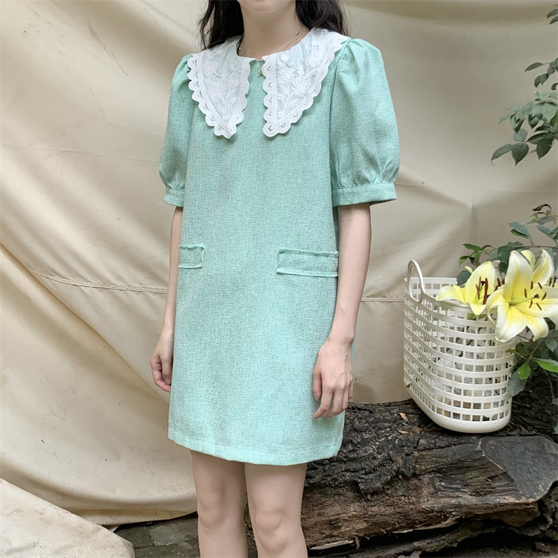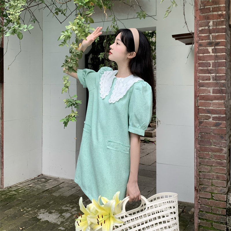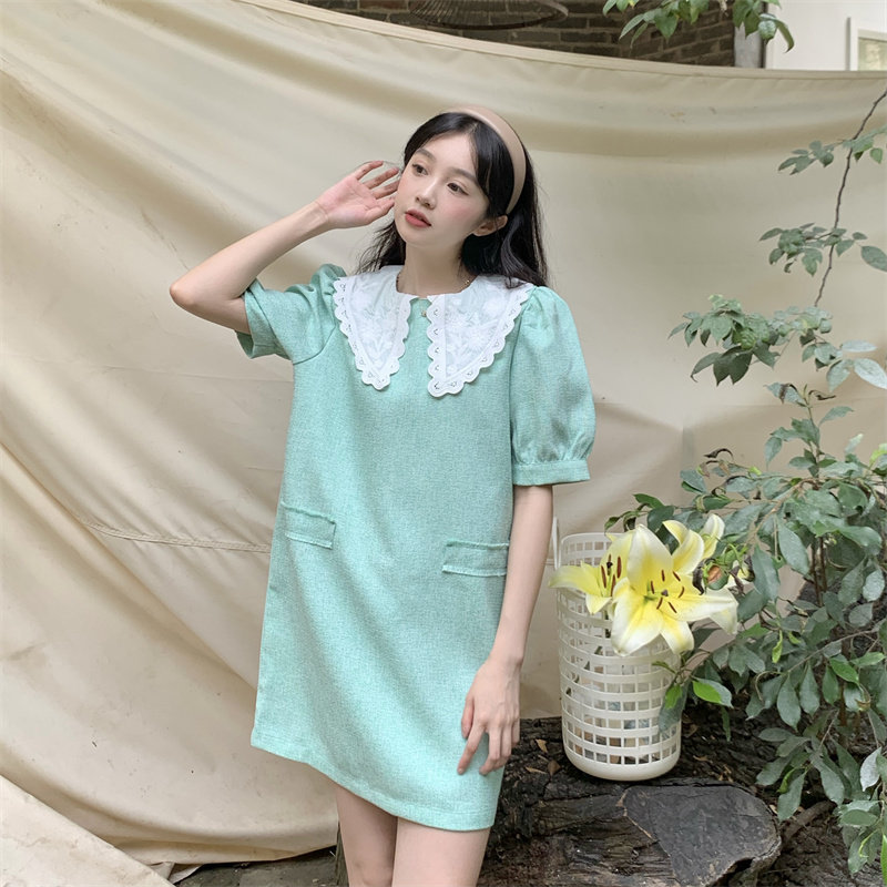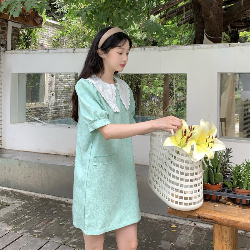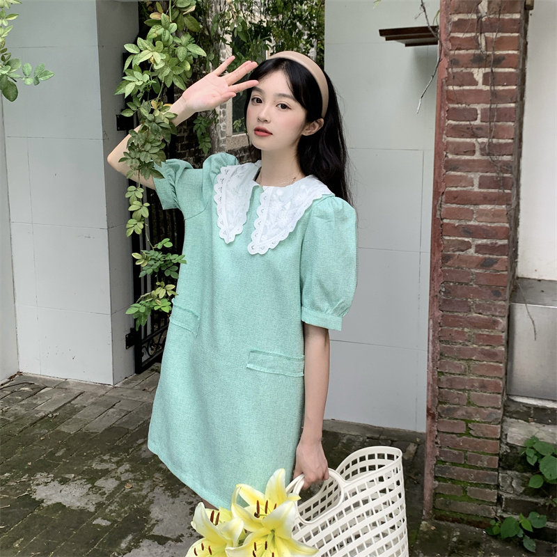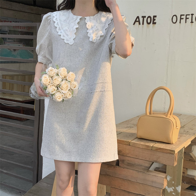 >> 實拍實價~夏季新款撞色娃娃翻領新款韓版寬松顯瘦連衣裙女