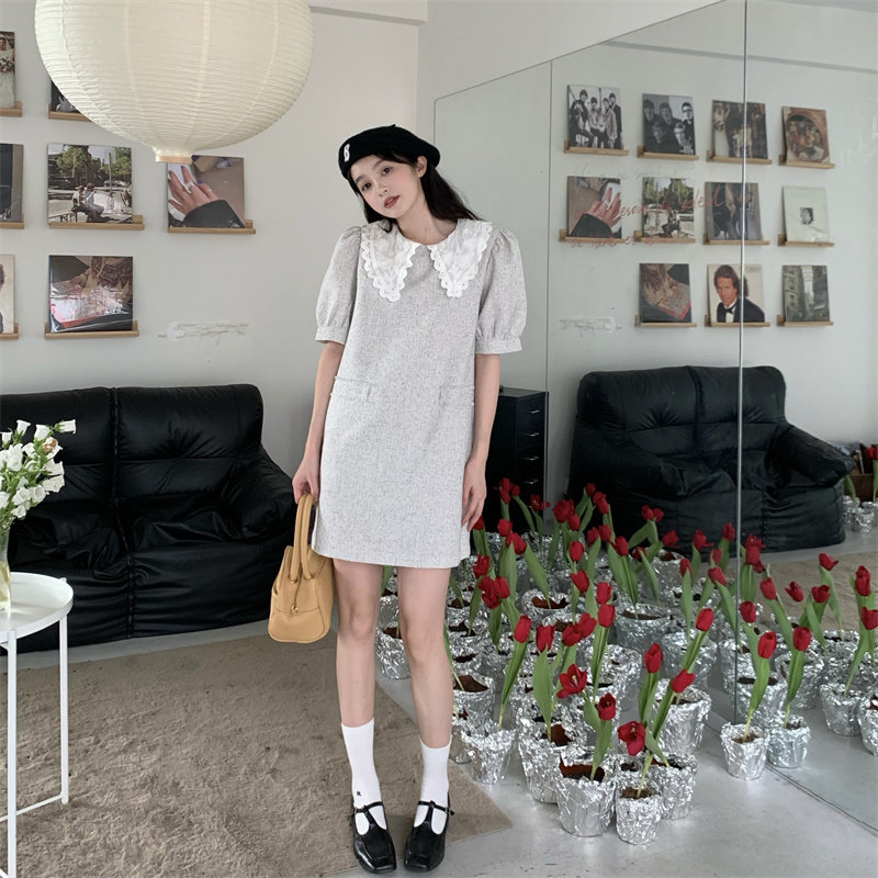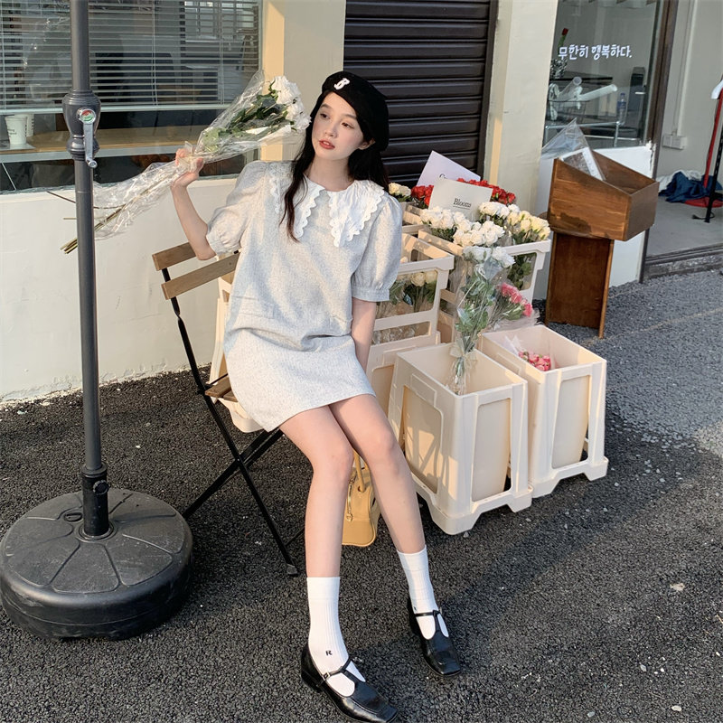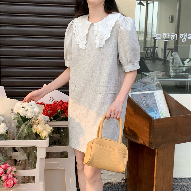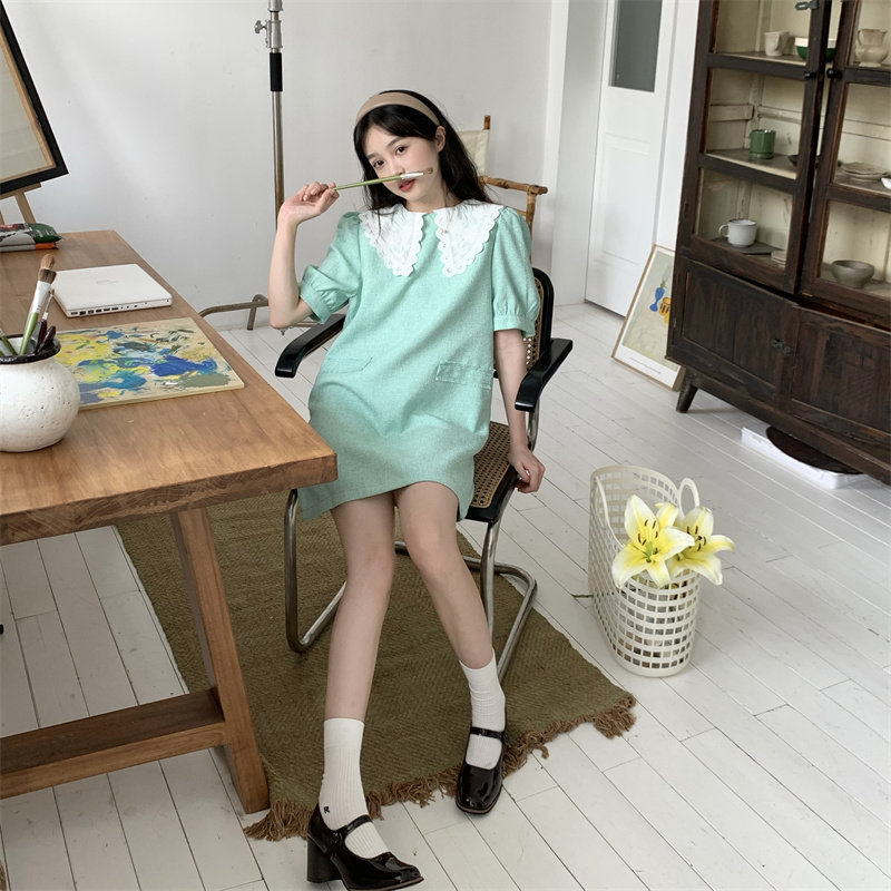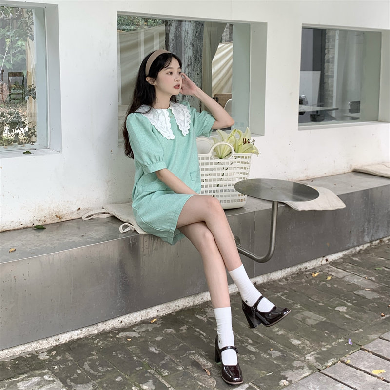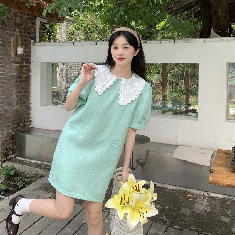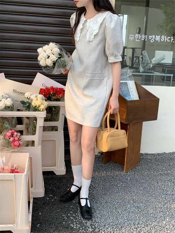 >> 實拍實價~夏季新款撞色娃娃翻領新款韓版寬松顯瘦連衣裙女