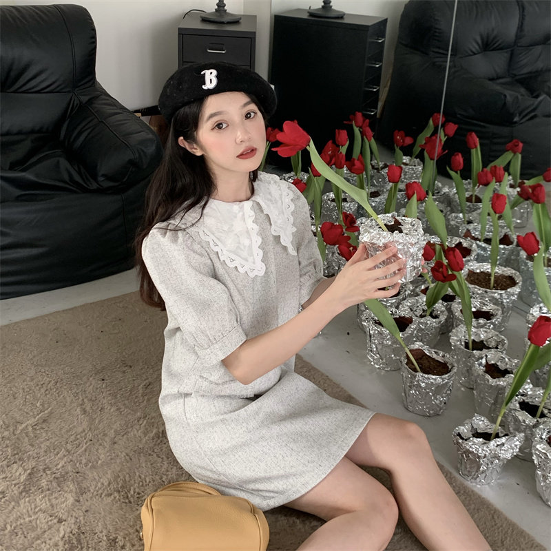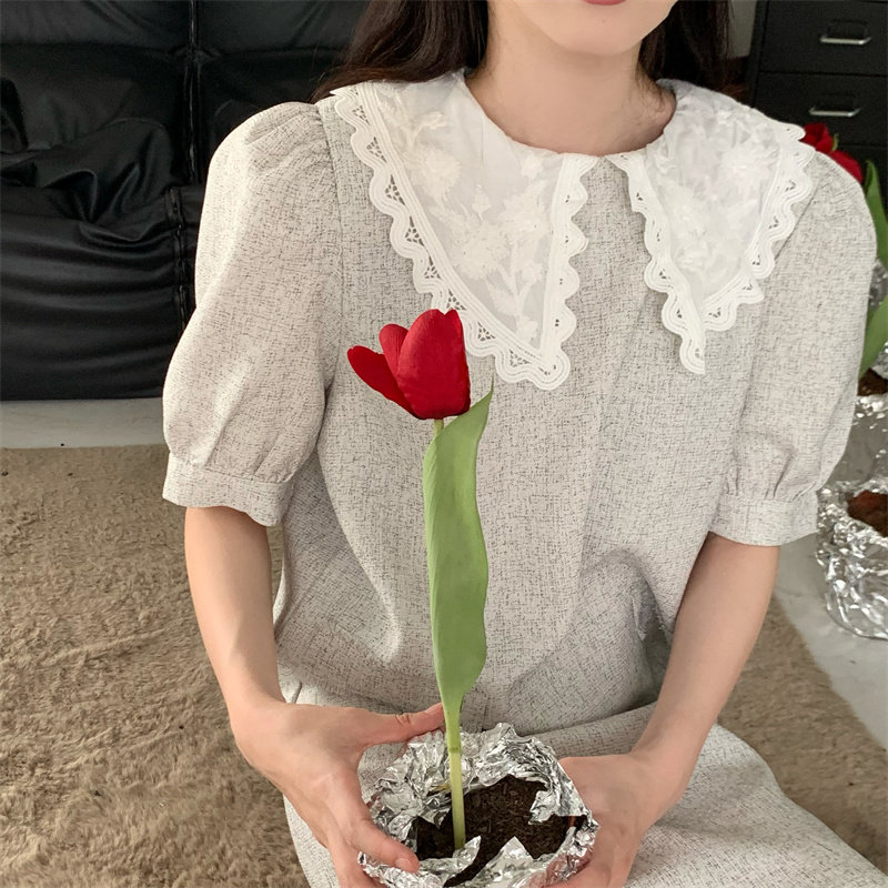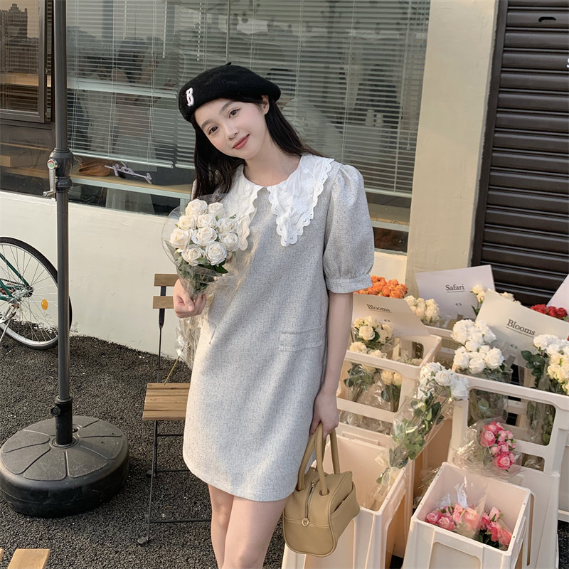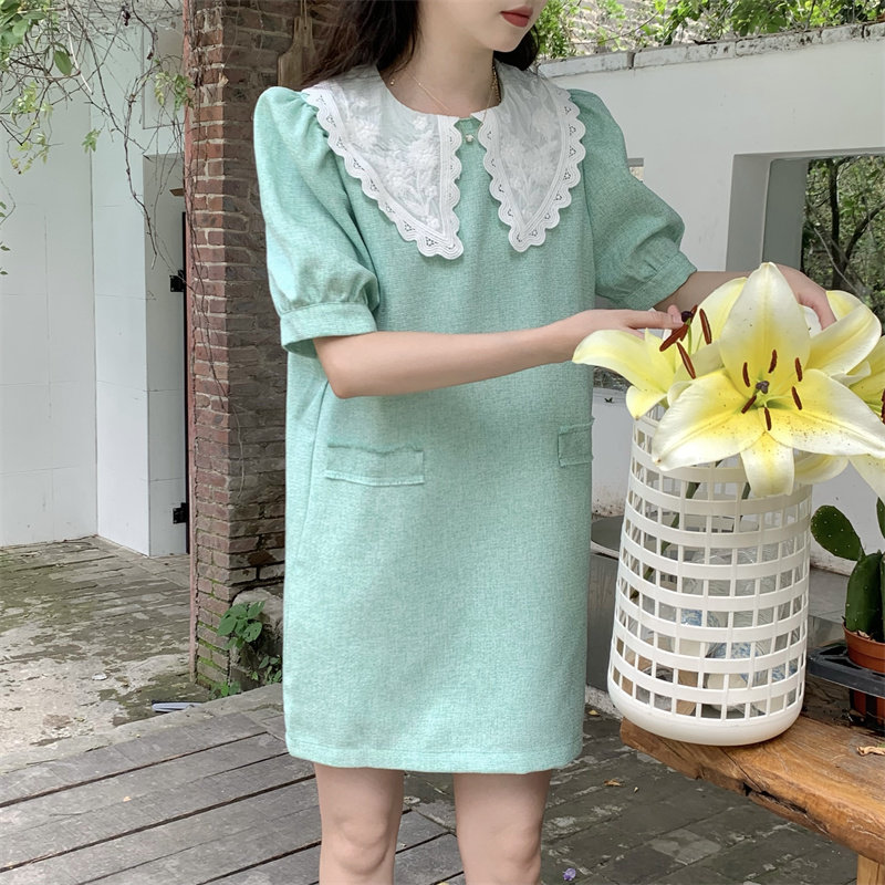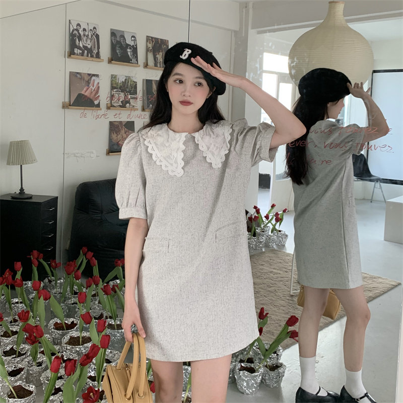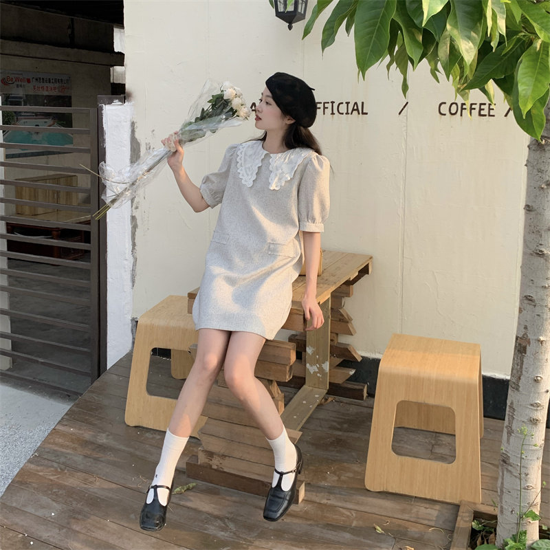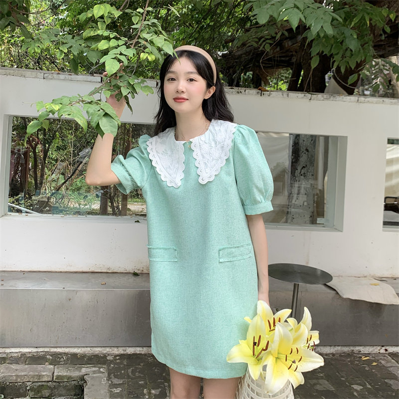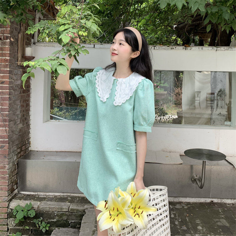>> 實拍實價~夏季新款撞色娃娃翻領新款韓版寬松顯瘦連衣裙女