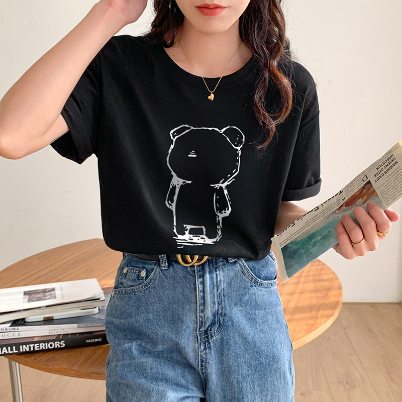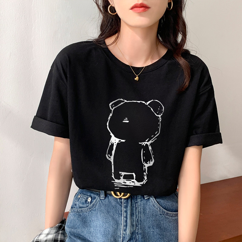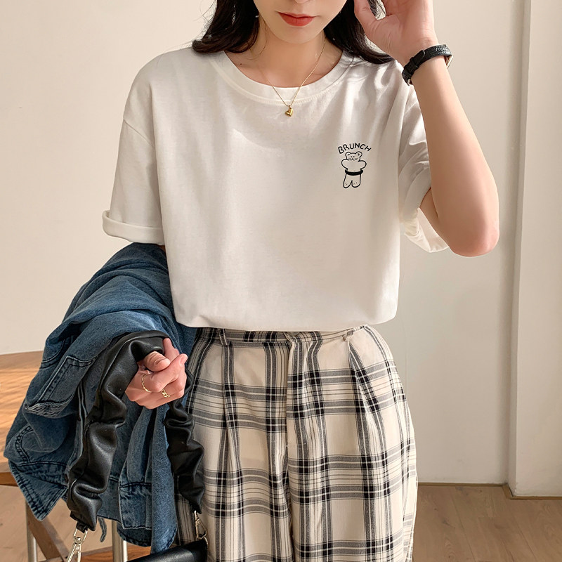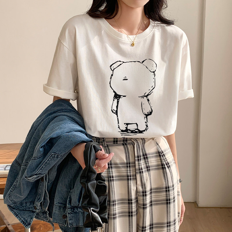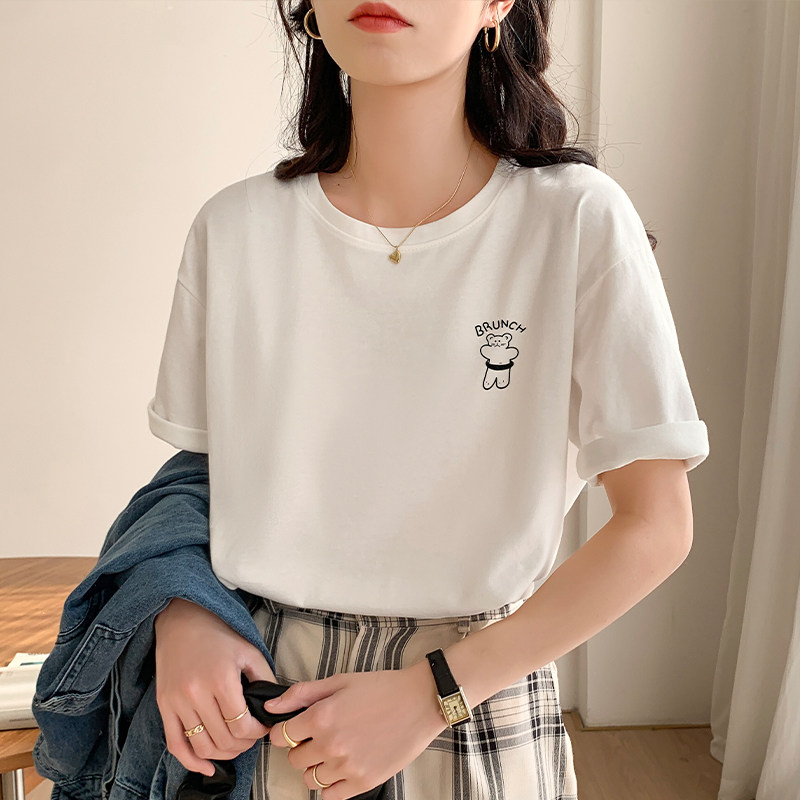 >> 實拍實價2022年夏季新款圓領短袖T恤女純棉寬松百搭半袖印花上衣