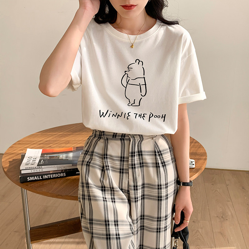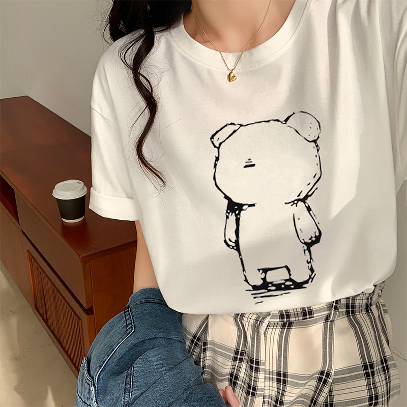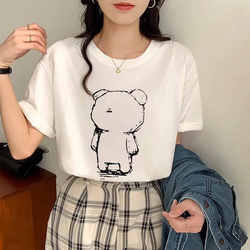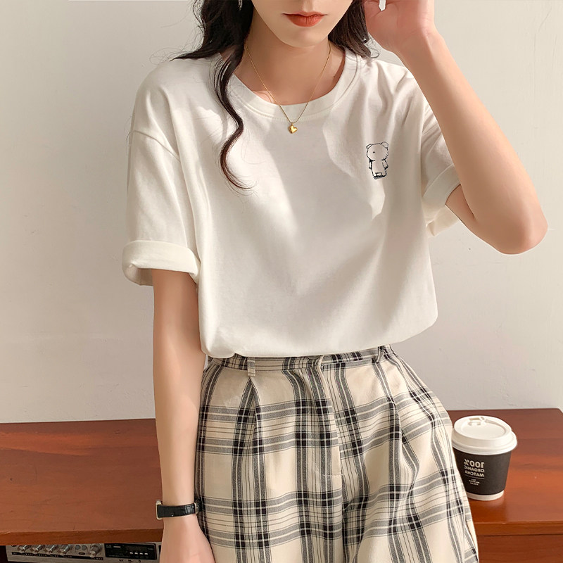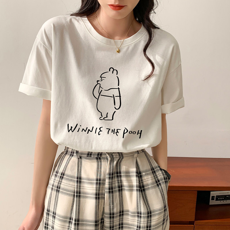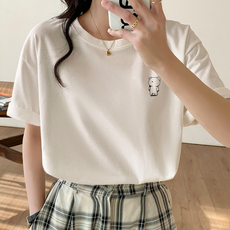 >> 實拍實價2022年夏季新款圓領短袖T恤女純棉寬松百搭半袖印花上衣
