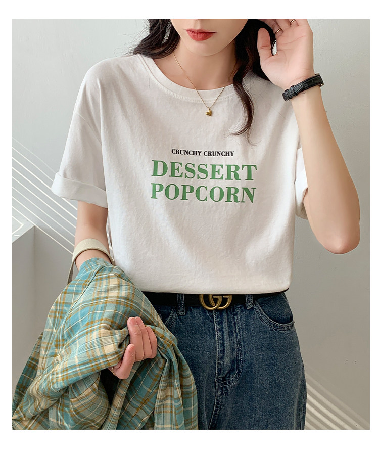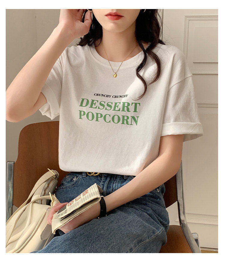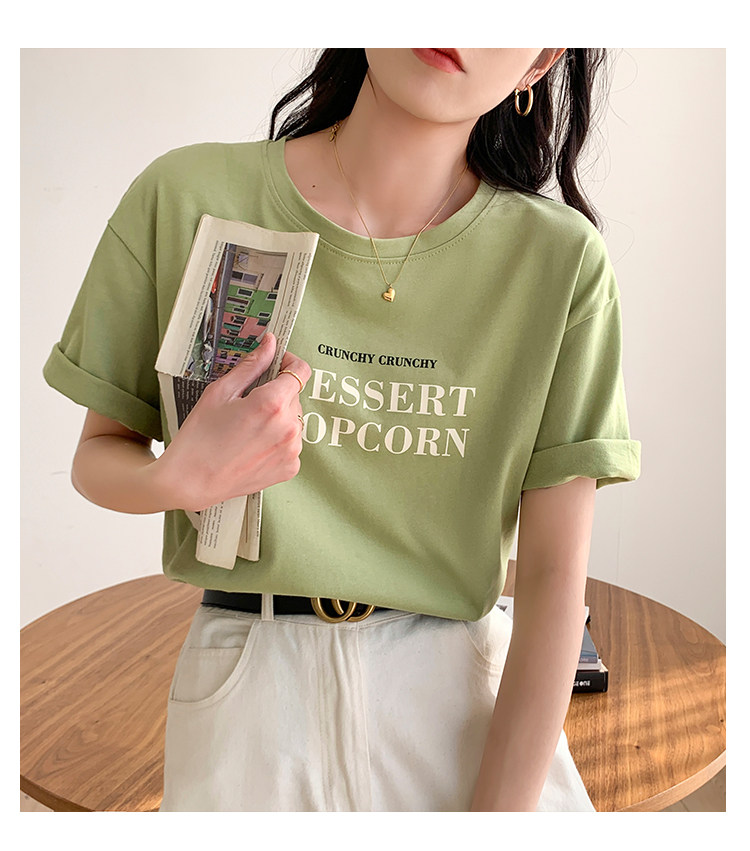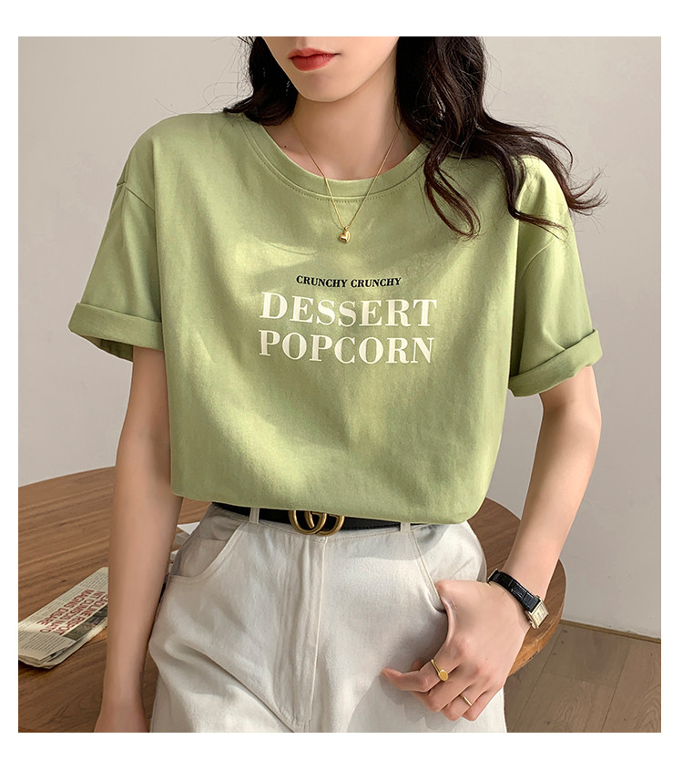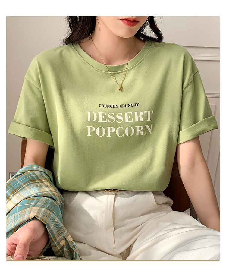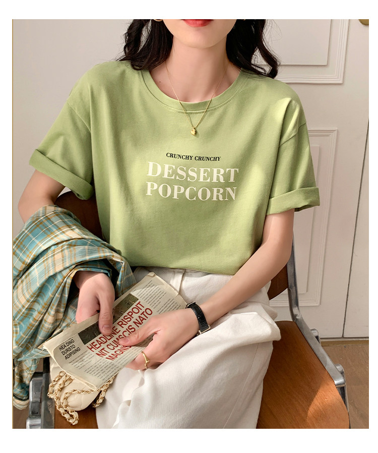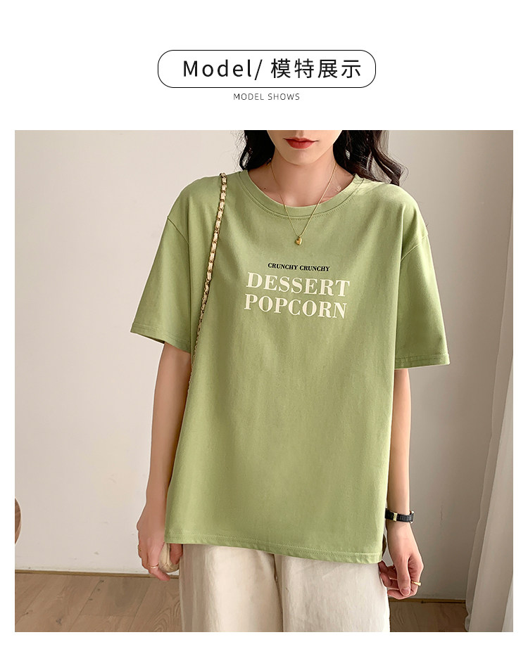 >> 實拍實價牛油果綠短袖t恤女2022年夏季新款字母印花寬松半袖上衣