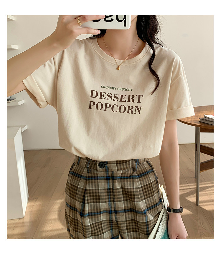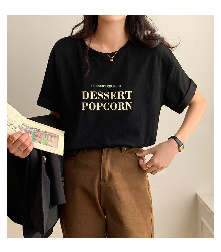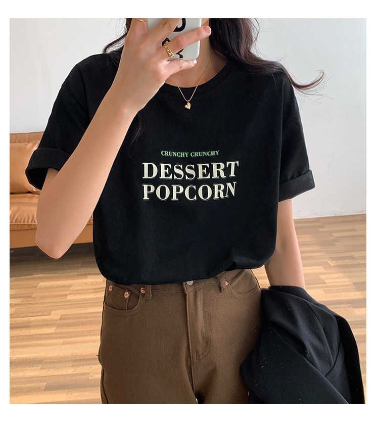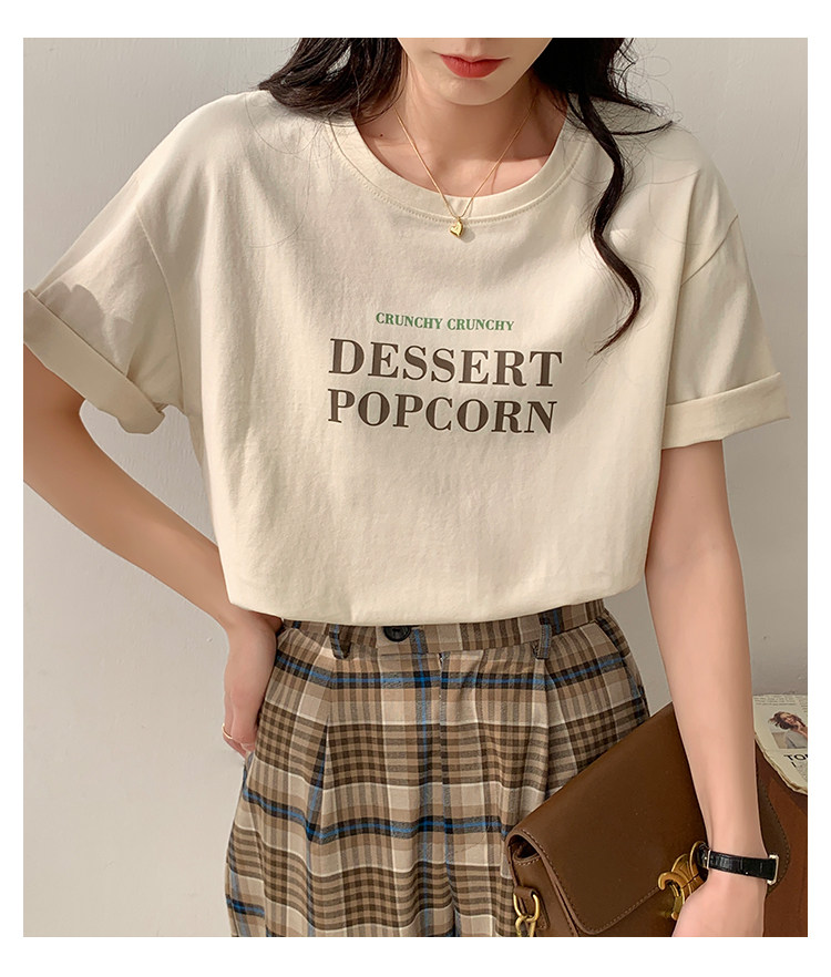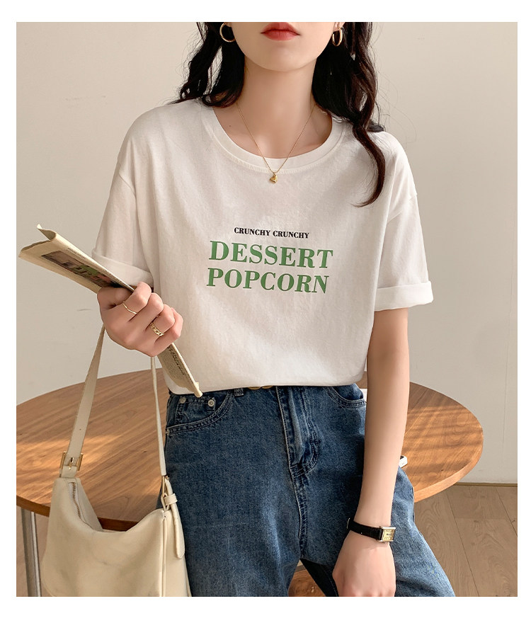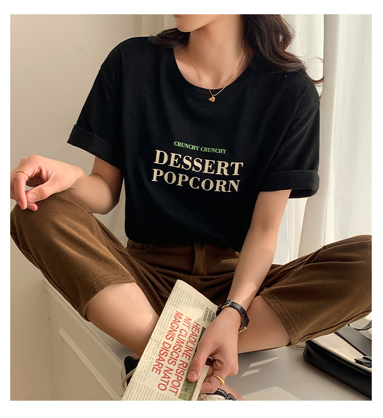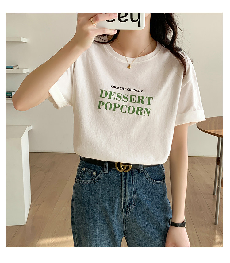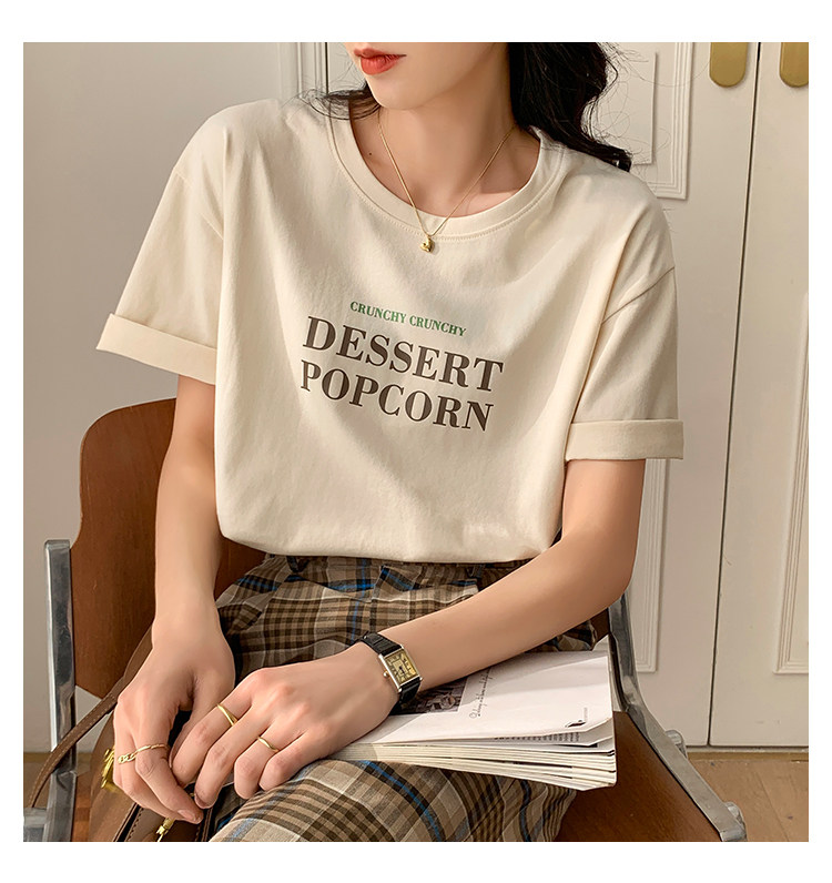 >> 實拍實價牛油果綠短袖t恤女2022年夏季新款字母印花寬松半袖上衣
