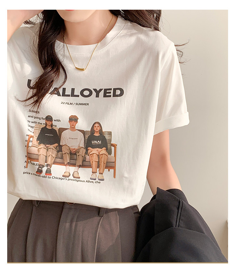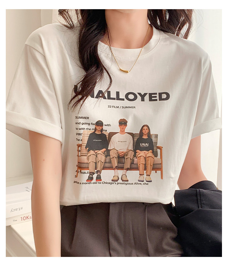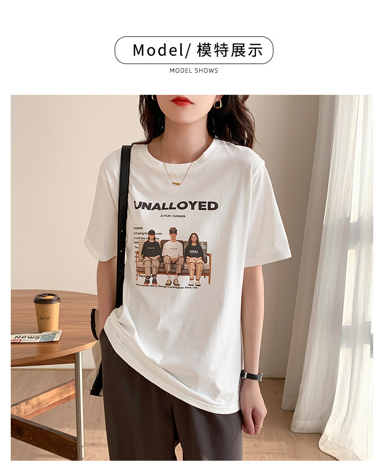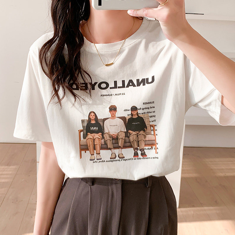 >> 實拍實價2022年夏季新款印花純棉上衣女寬松百搭薄款t恤短袖ins潮