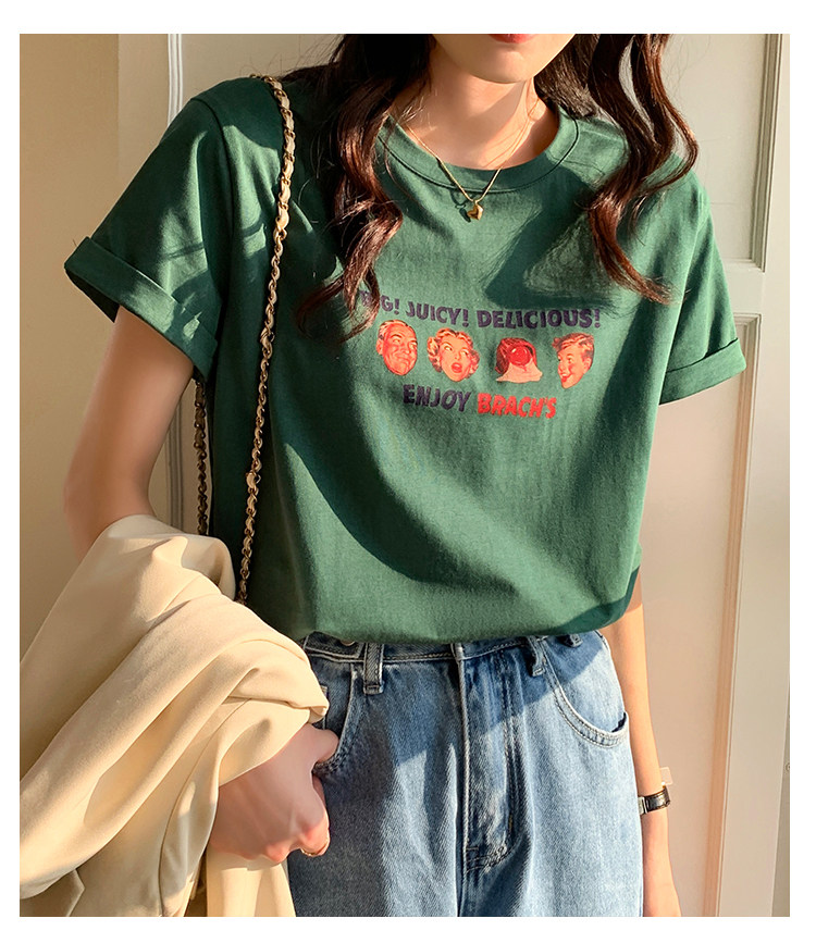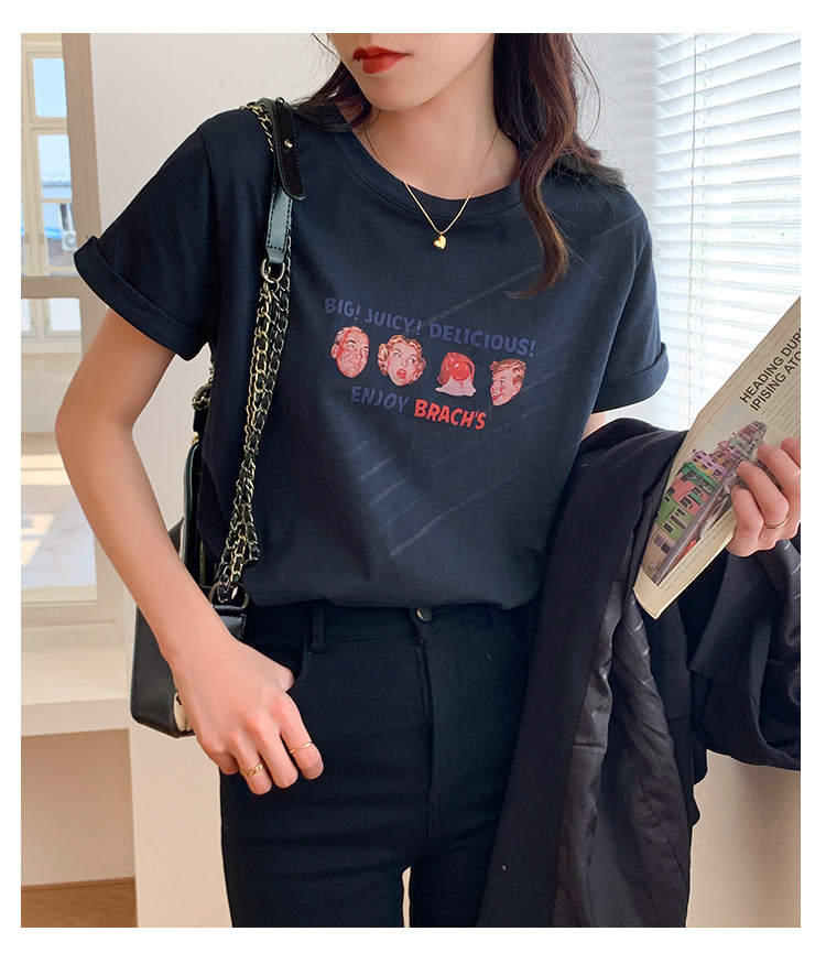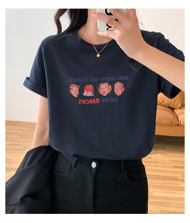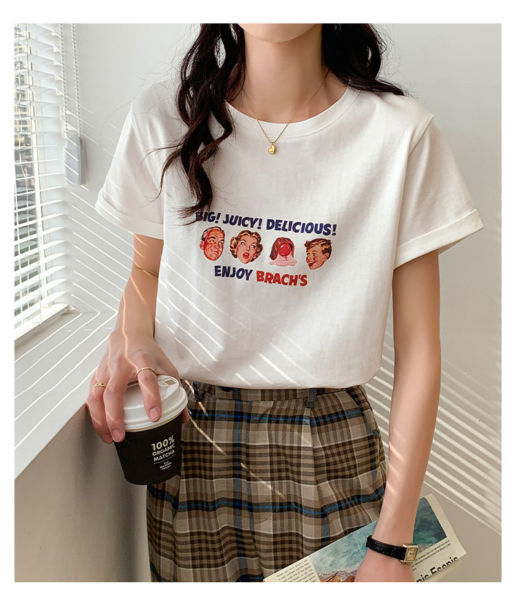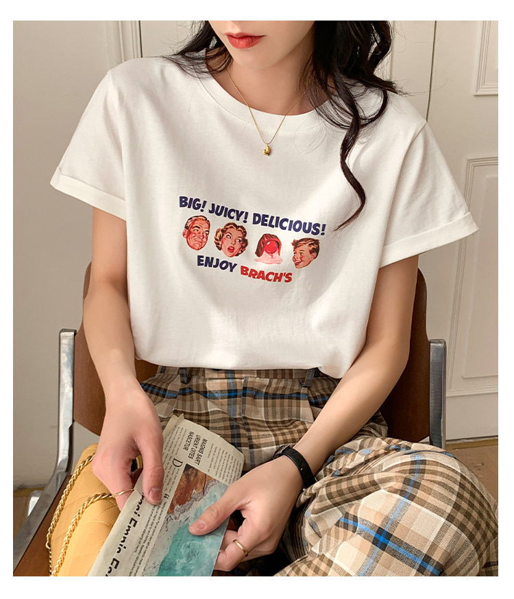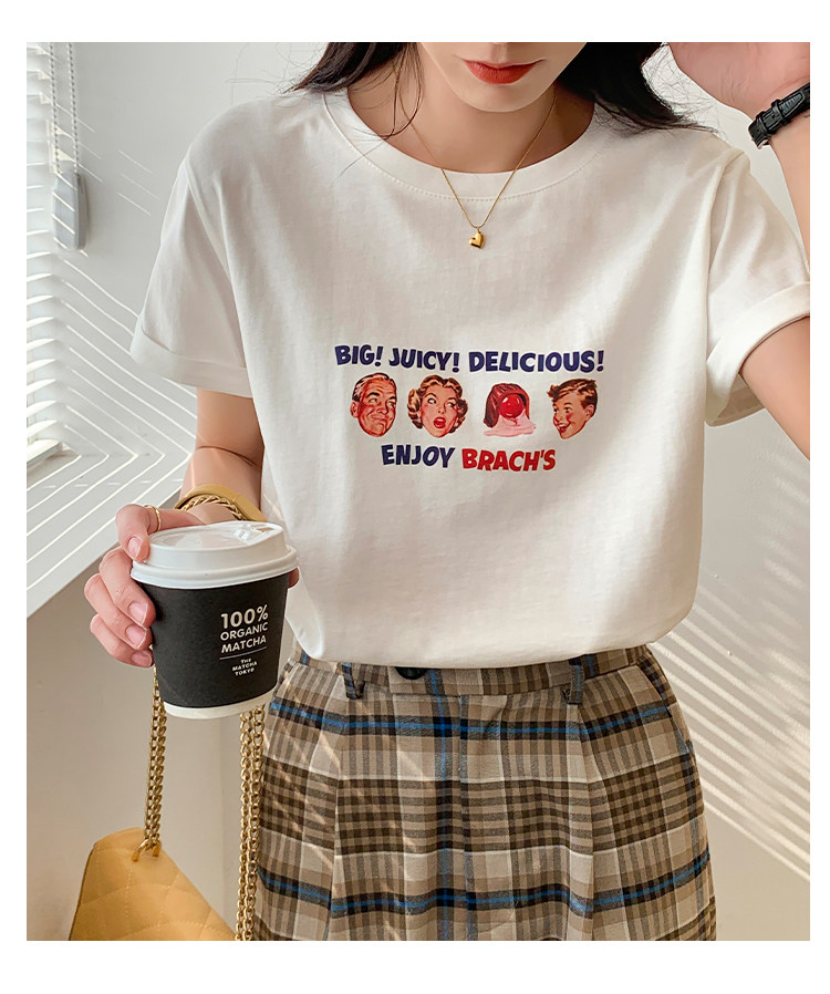 >> 實拍實價白色t恤女短袖夏季2022年新款寬松百搭純棉印花半袖上衣