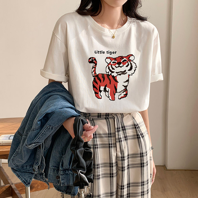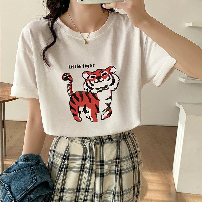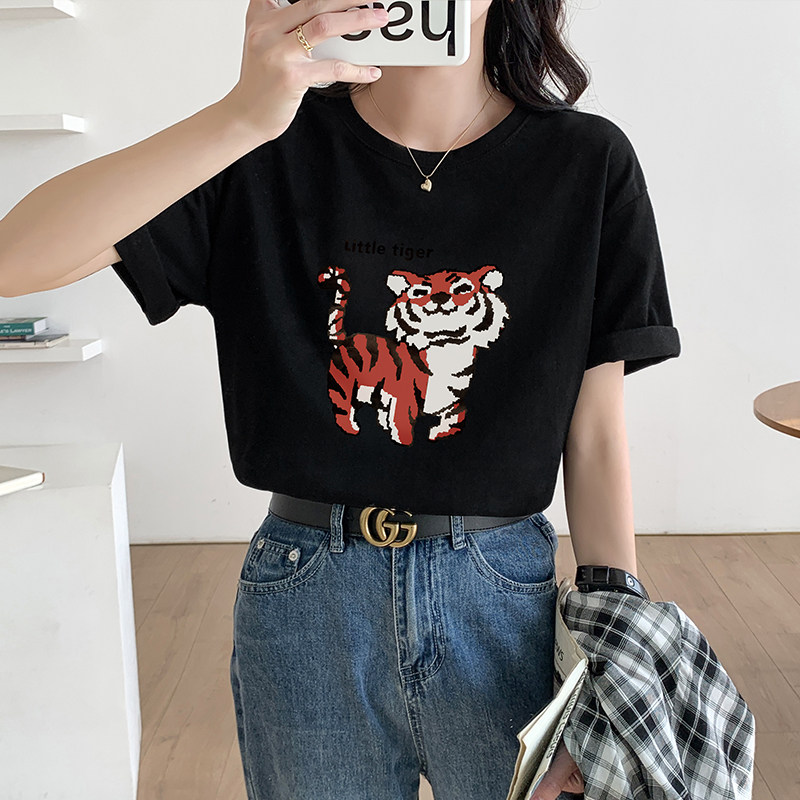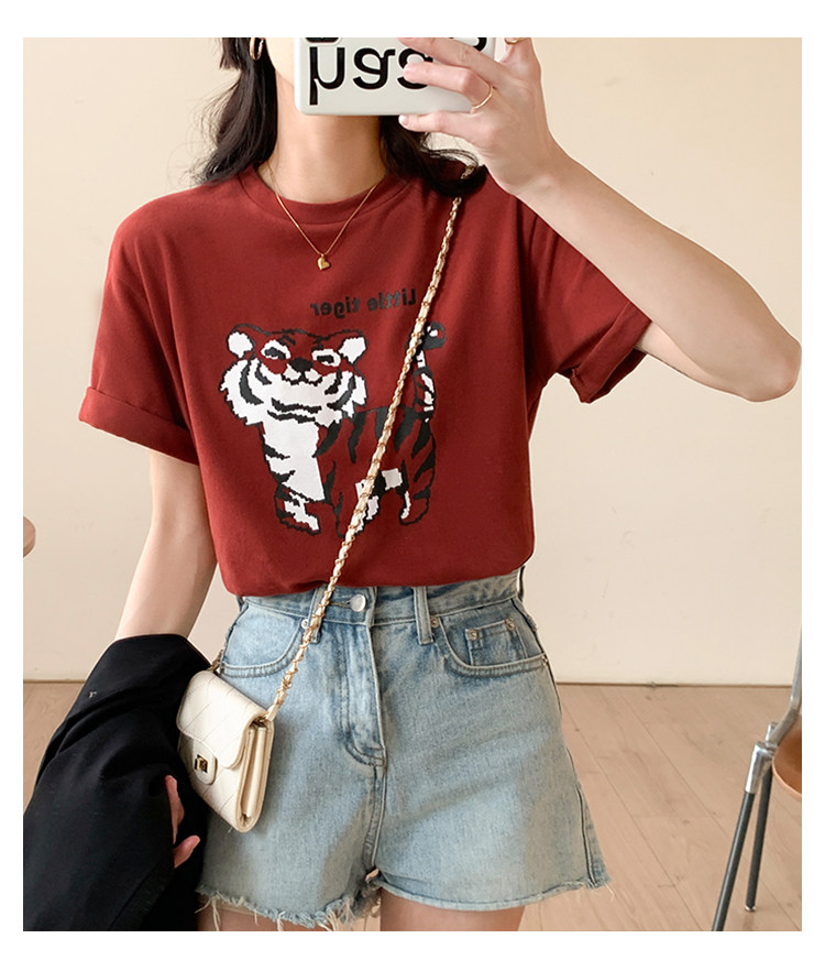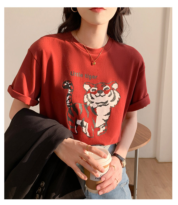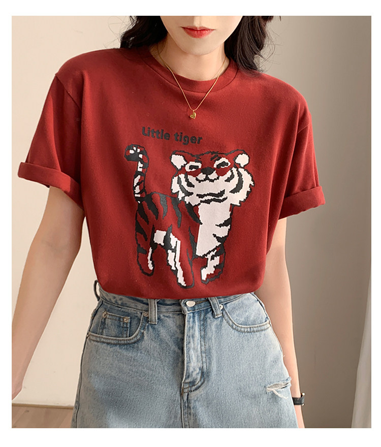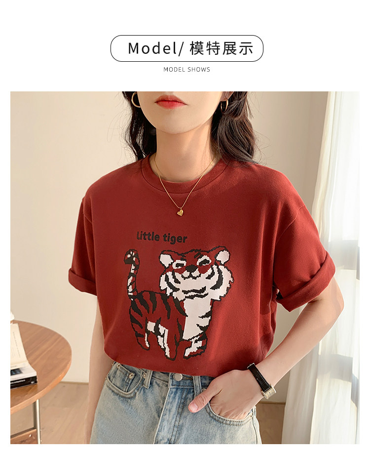 >> 實拍實價虎年紅色t恤女短袖2022年春夏新款寬松洋氣圓領半袖體恤