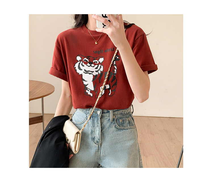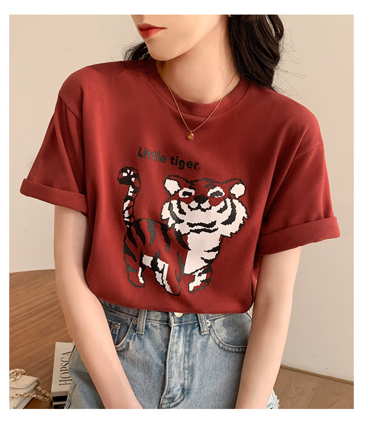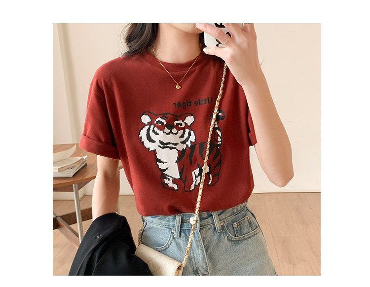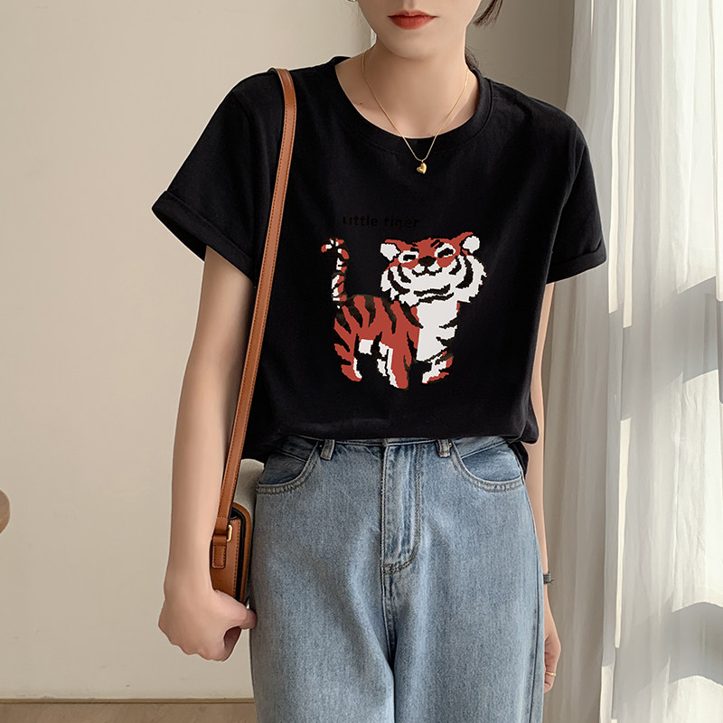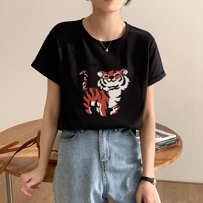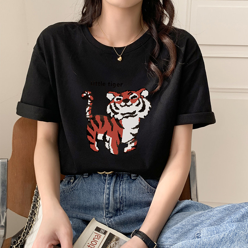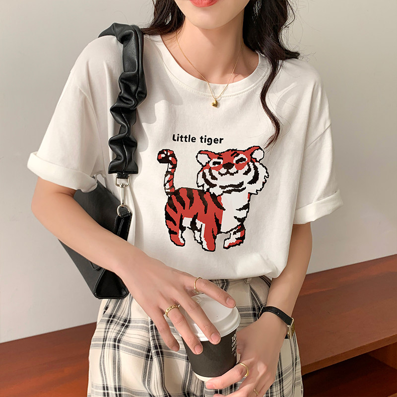 >> 實拍實價虎年紅色t恤女短袖2022年春夏新款寬松洋氣圓領半袖體恤