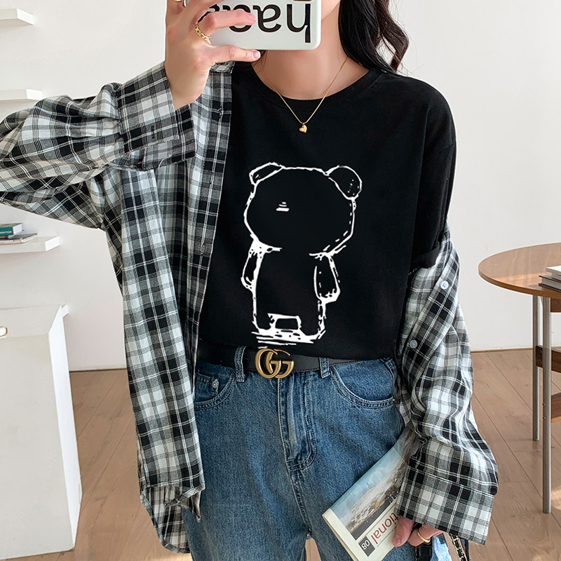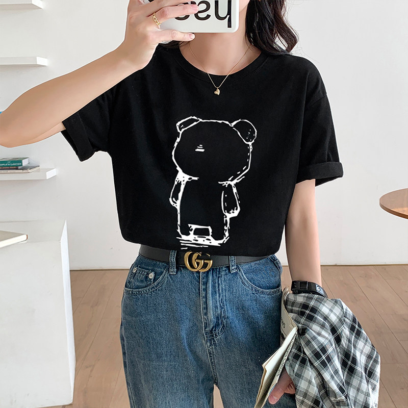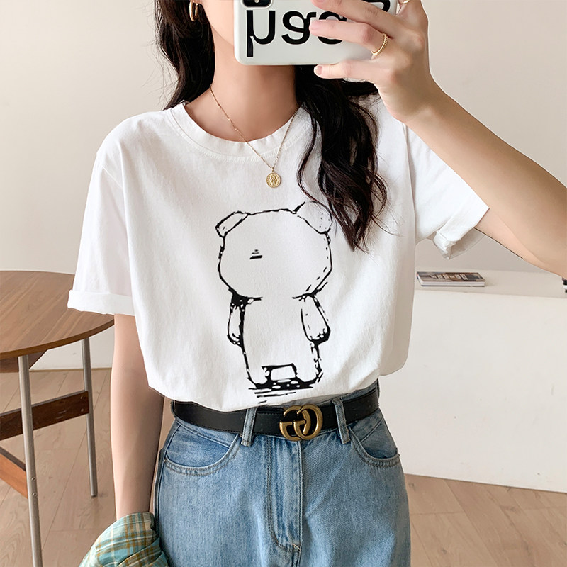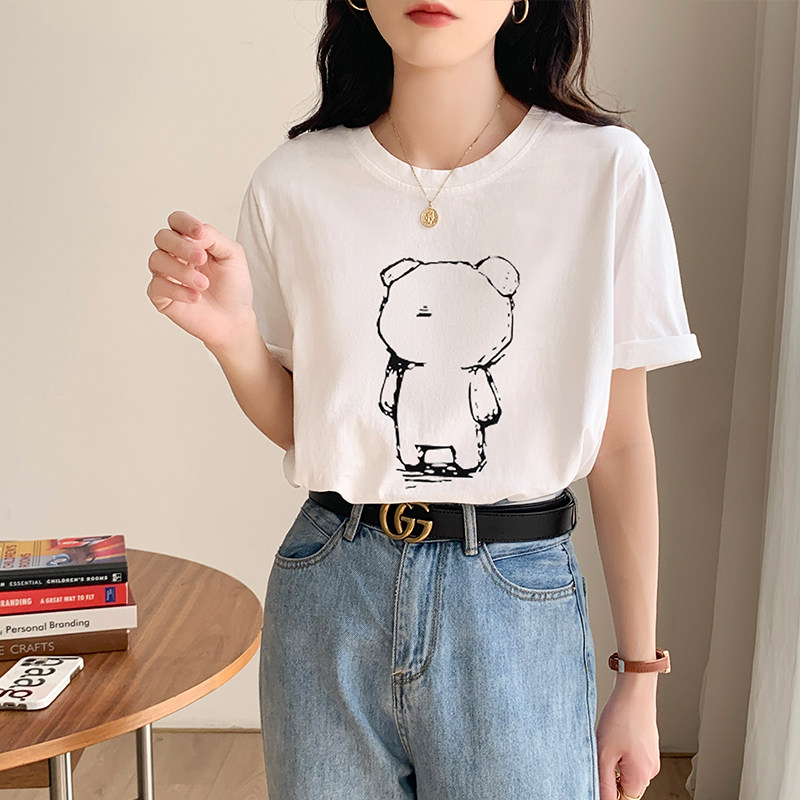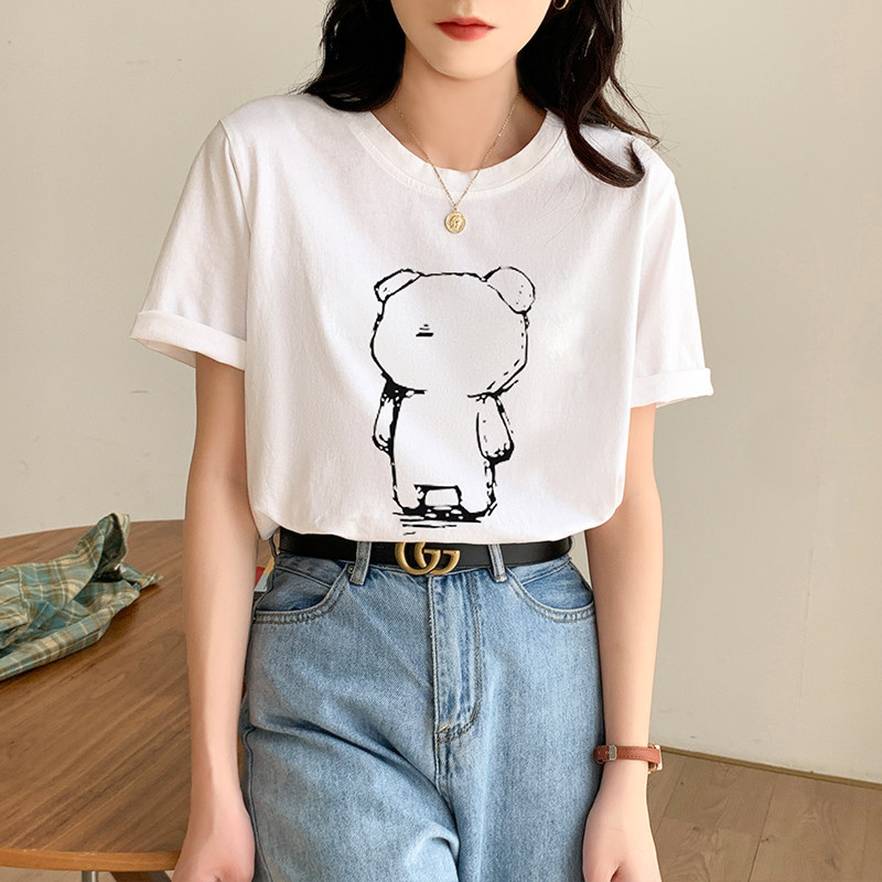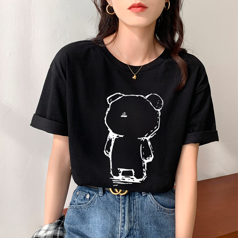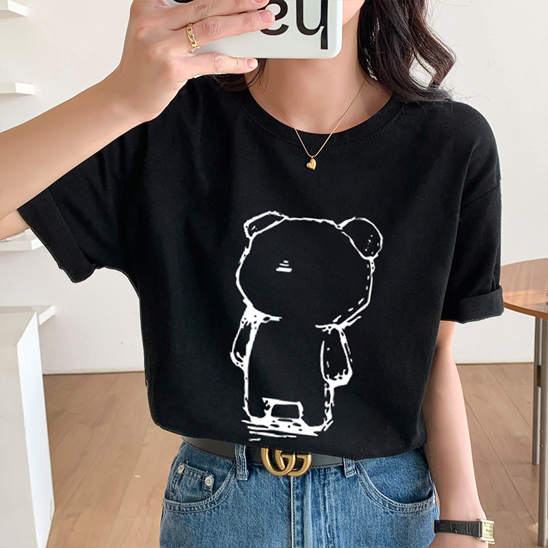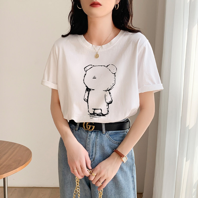 >> 實拍實價小熊印花短袖t恤女2022年夏季新款寬松純棉半袖打底衫潮