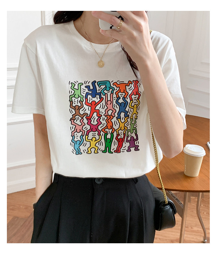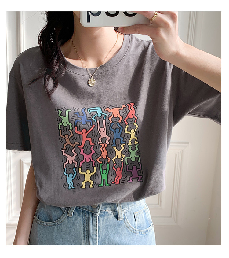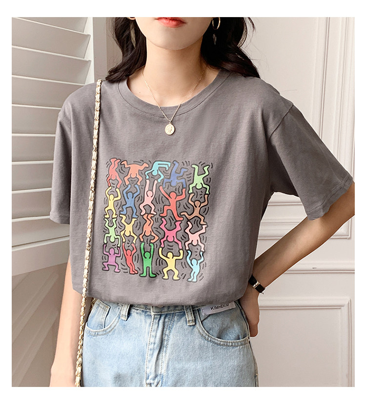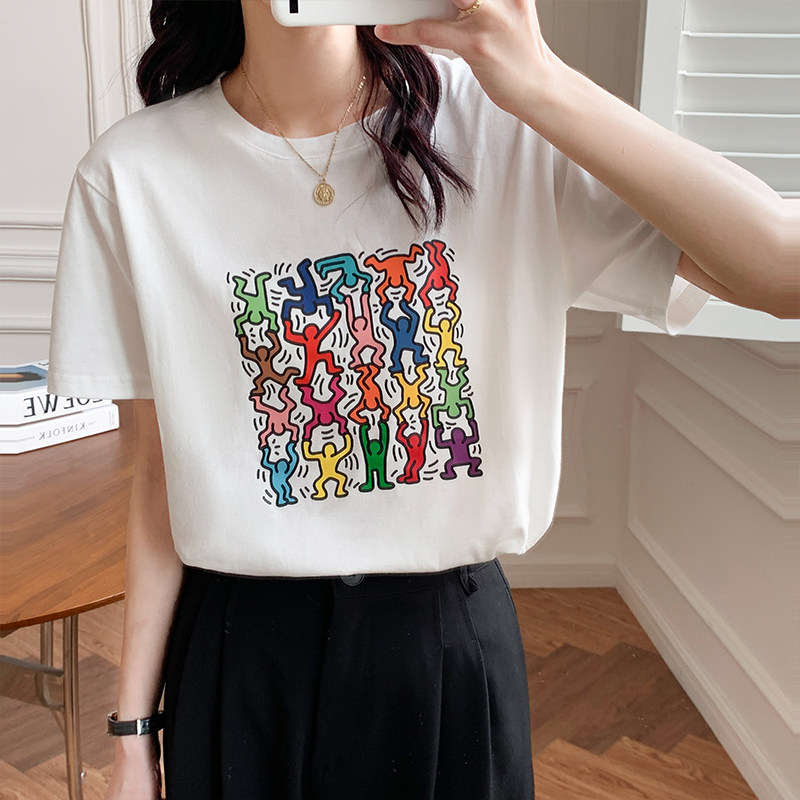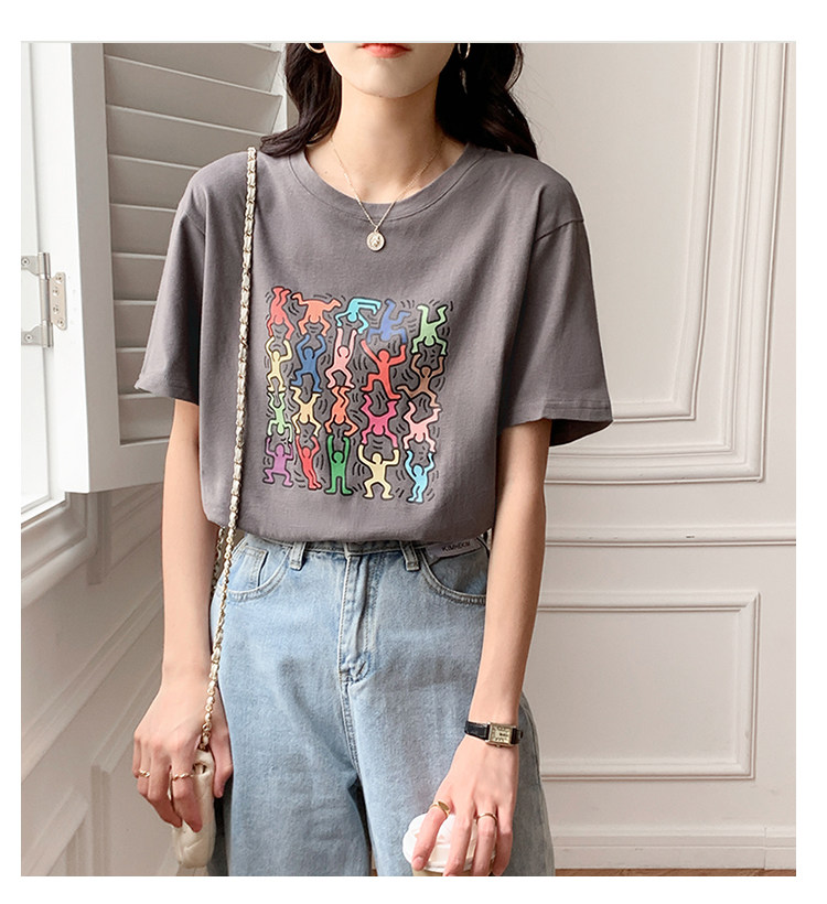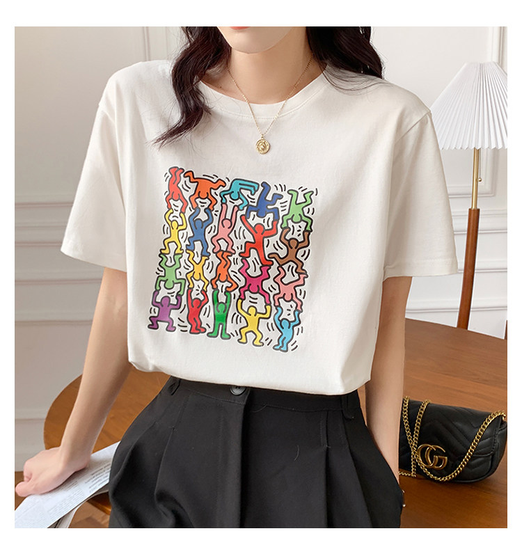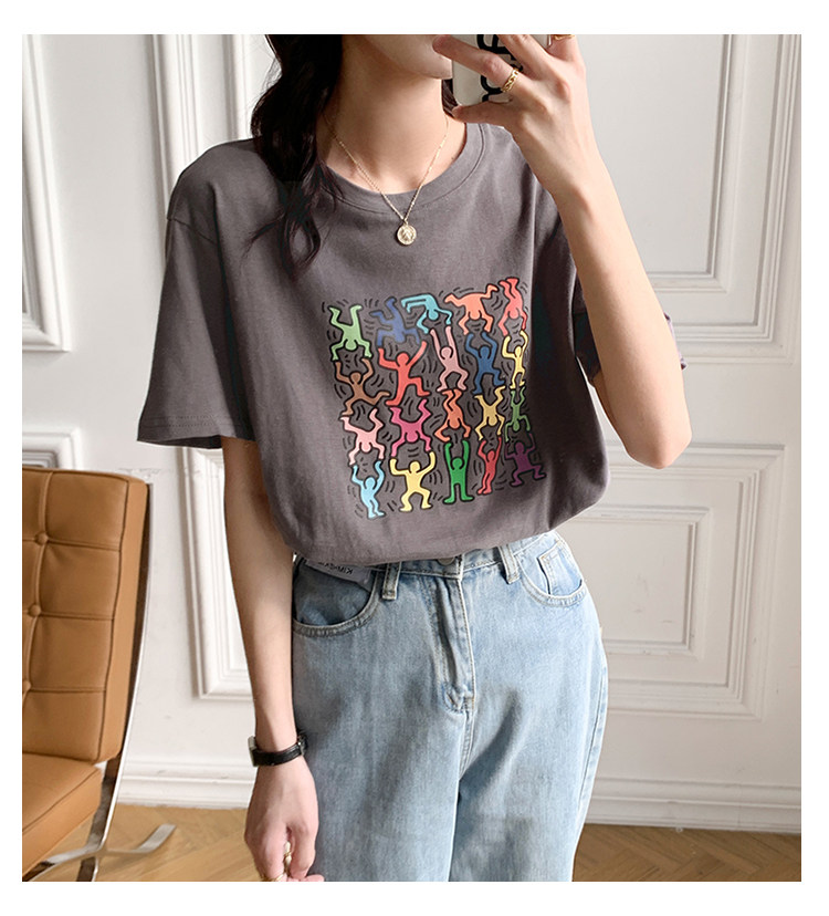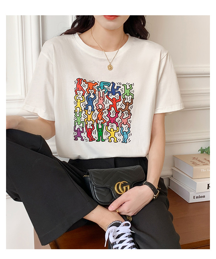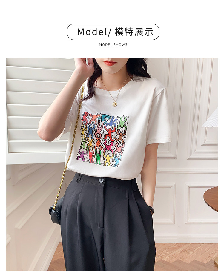 >> 實拍實價2022年夏裝新款印花短袖t恤女寬松百搭半袖圓領內搭上衣