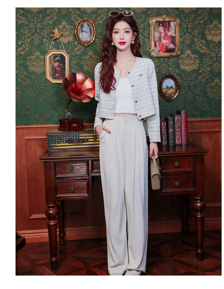 >> 韩系少女风圆领宽松小香风外套短款2024秋季新款千金名媛上衣