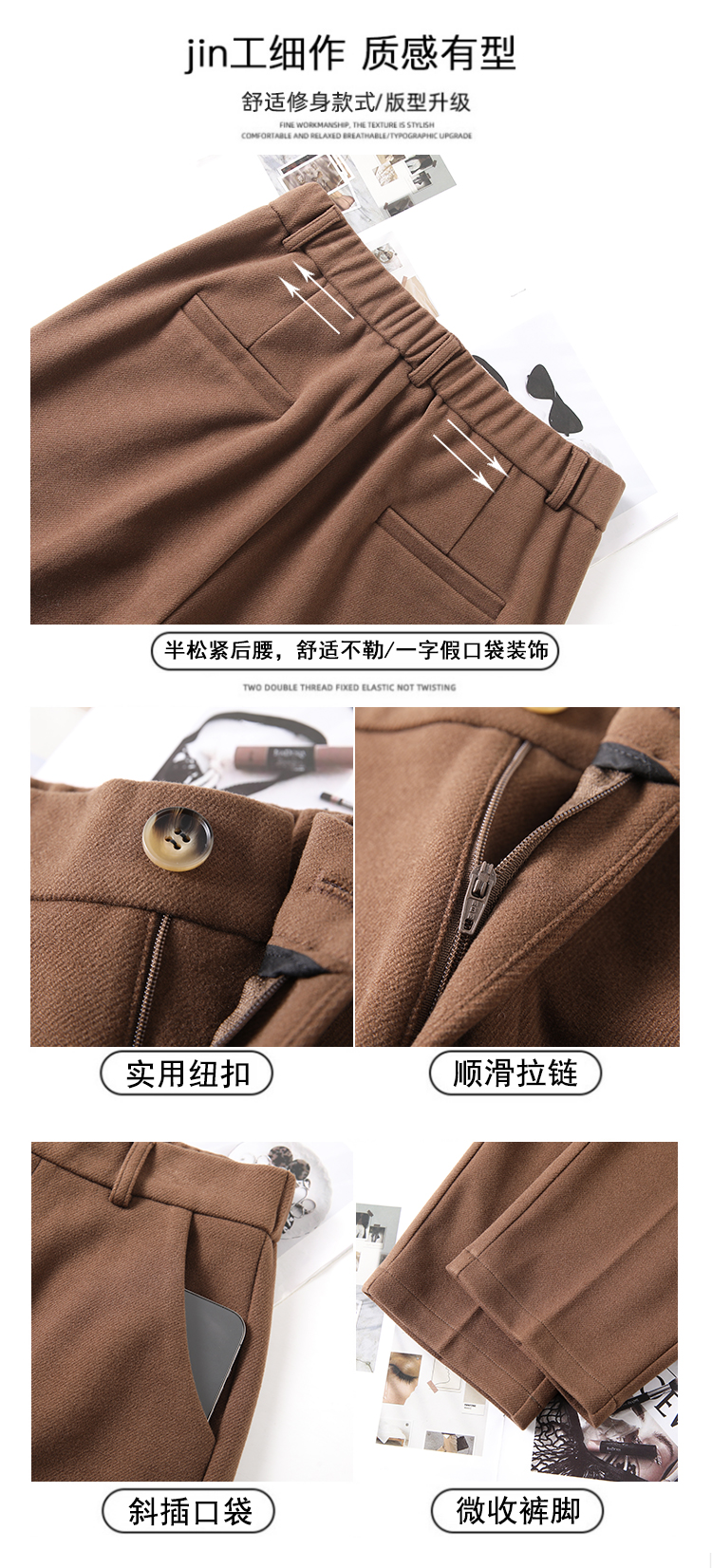 >> 美拉德棕色直筒西裤女秋冬新款高腰休闲毛呢烟管裤加绒显瘦九分裤(加絨 )