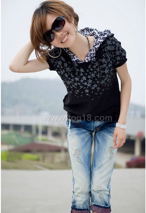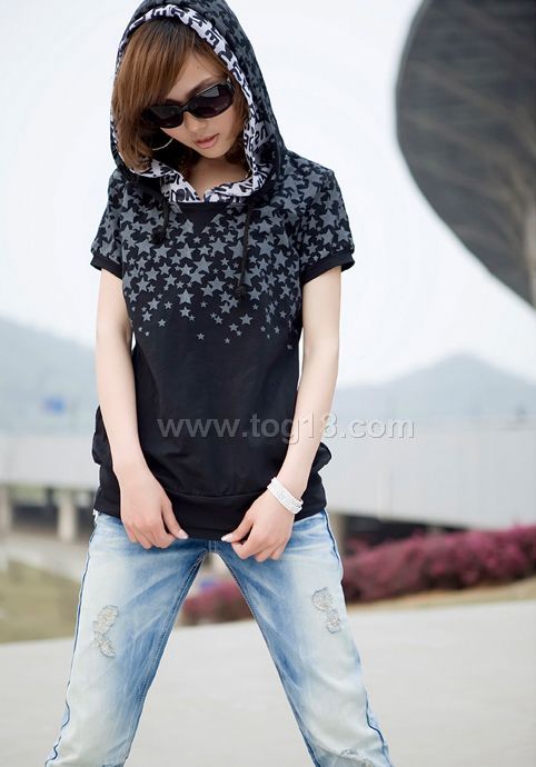 2010最新连帽白俏短袖T恤