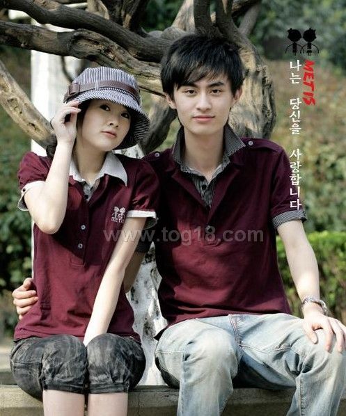 款式描述:假两件的设计,男女条纹各有不同,女款烫钻,男款肩章,各显气质!