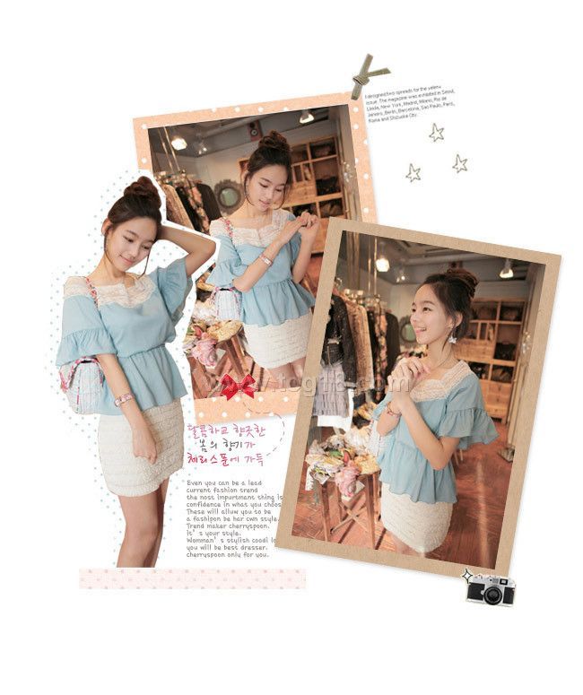 2010 cherry 同款♀清新喇叭袖~韩版唯美大荷叶下摆T恤