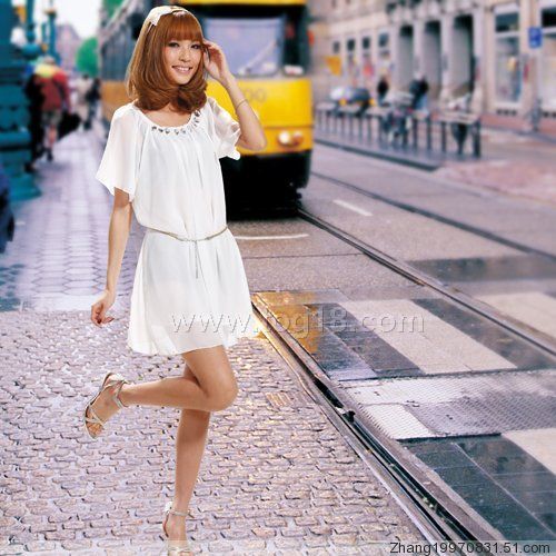 2010夏季新款 韓版淑女雪紡鑽石連衣裙+皮帶