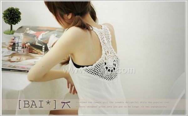 2010年流行時尚後背圖騰手工勾花挖背式背心 4色