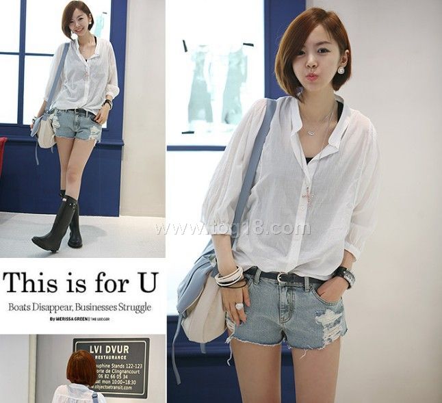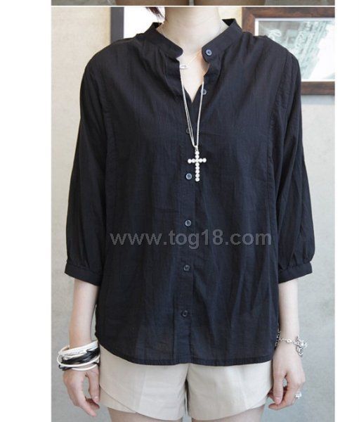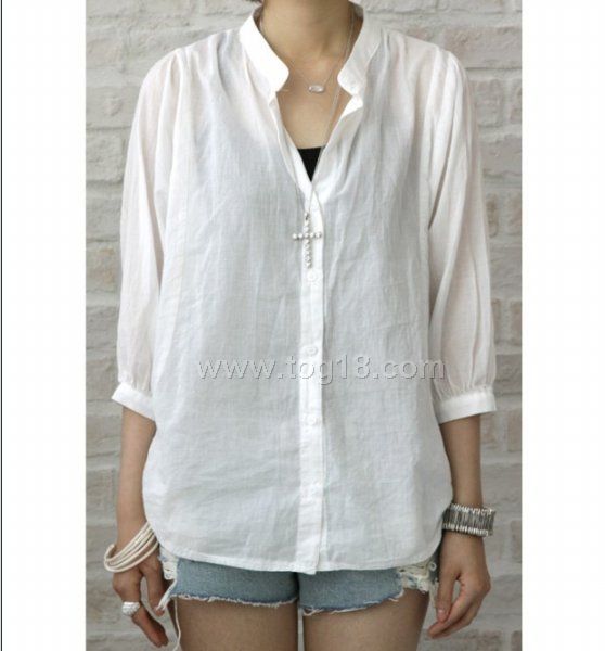 蝙蝠七分袖紐扣襯衫
