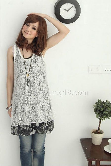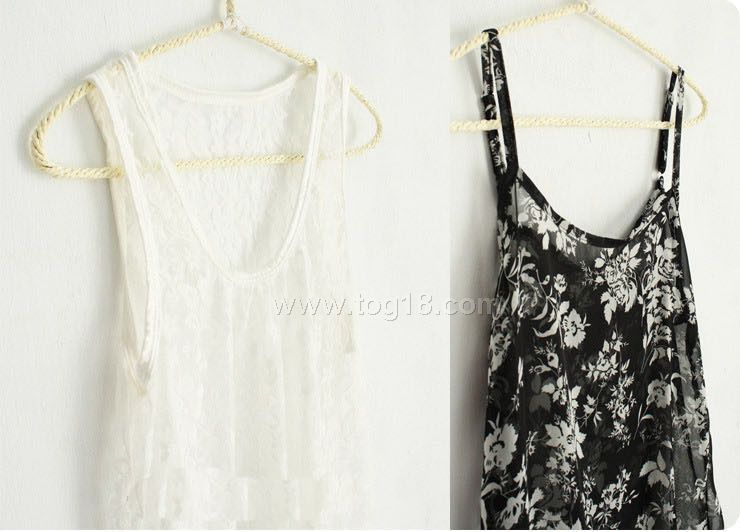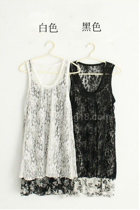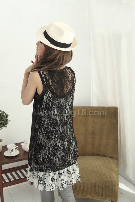 內雪紡吊帶裙子加外面蕾絲背心兩件套