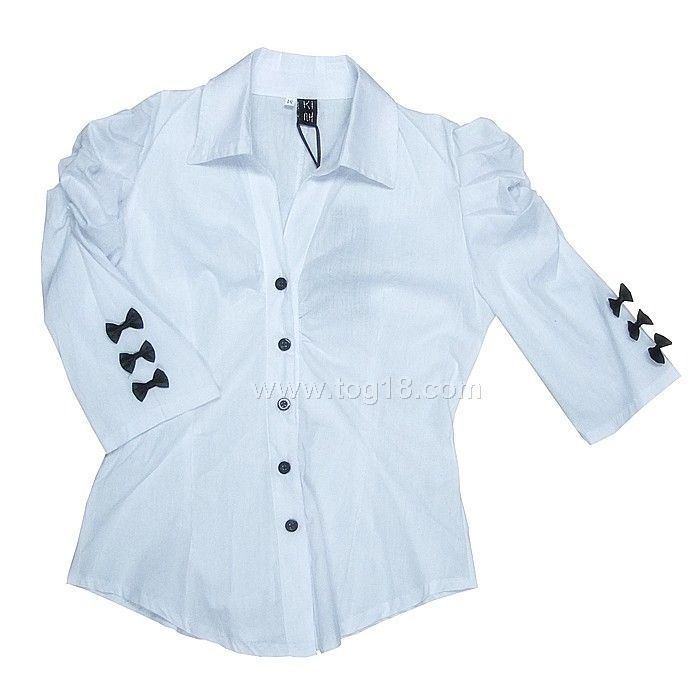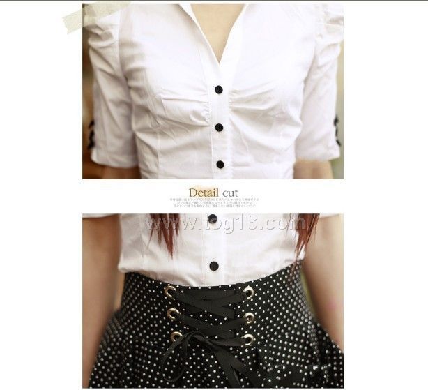 新款绝靓版型-韩版超显身形超甜美V领高肩袖衬衫