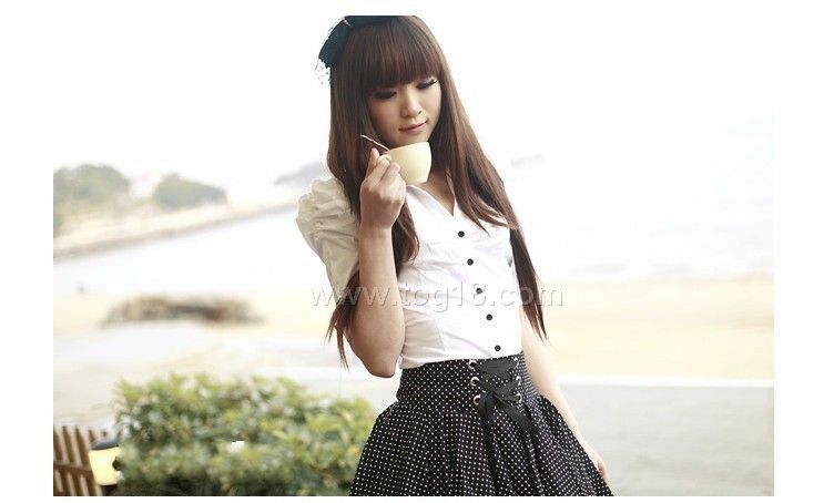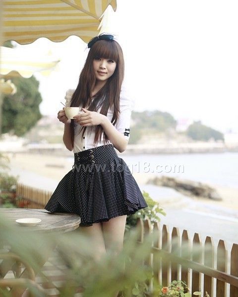 靓丽的小圆点高腰裙,外加衬衫的收身设计,别出心裁的宫廷裙式的独特剪裁与腰封,能非常好的修饰身线,超级显瘦!而且超显气质!
