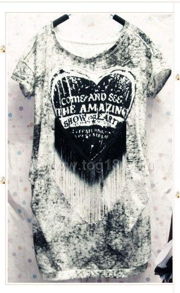 時尚熱賣 心形流蘇寬鬆長款圓領T恤