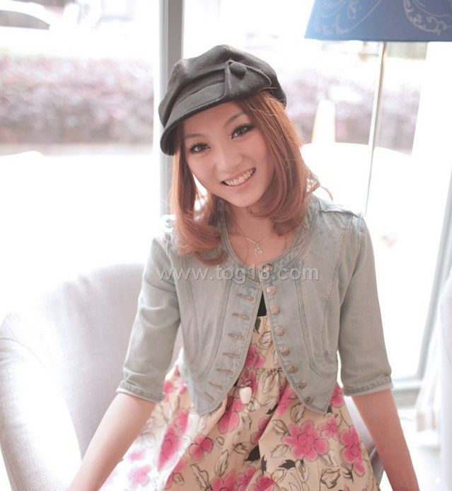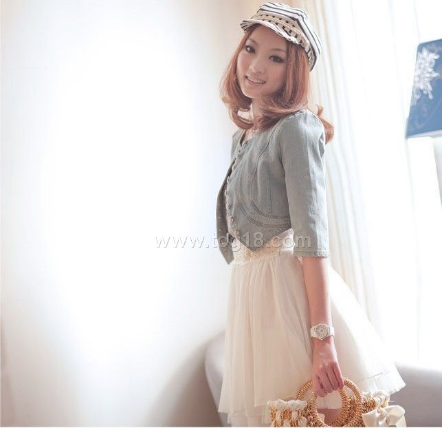 10秋季新款 帥氣軍裝-修身中袖單排扣短牛仔外套 (原價45,特價39)