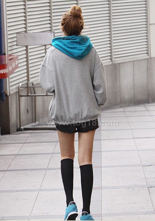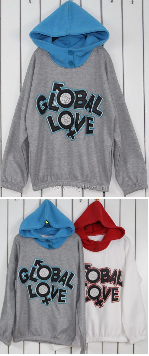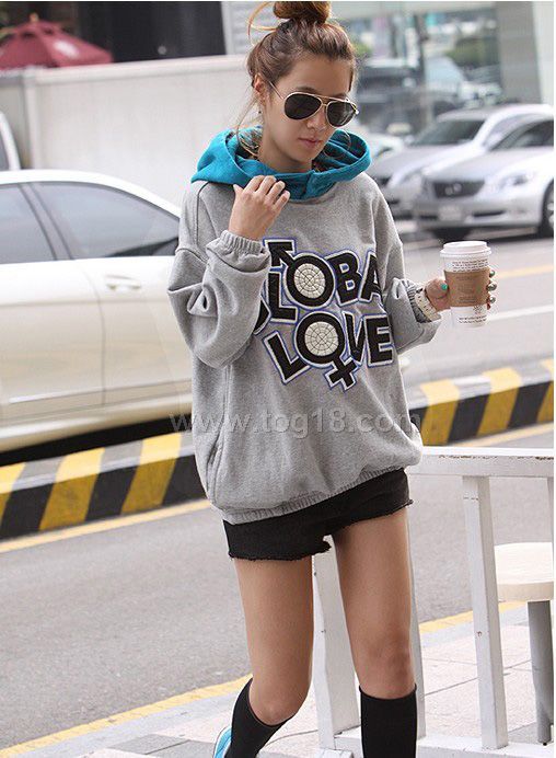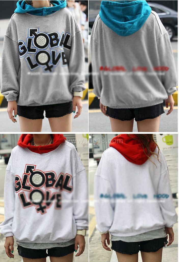 李孝利最愛差色帽繡花字母套頭衛衣(顏色以帽子為準)