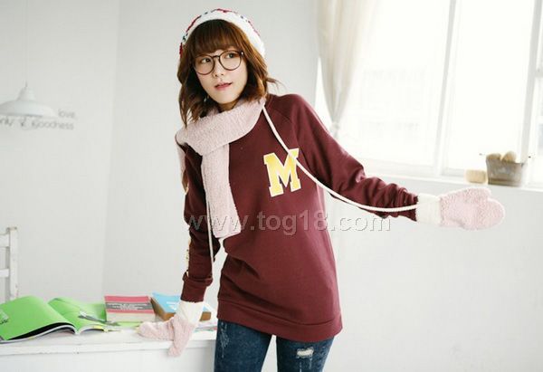 胸前大M字母套頭上衣
