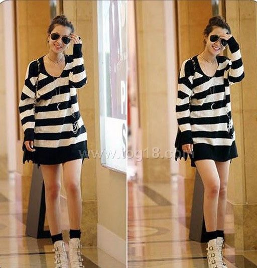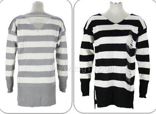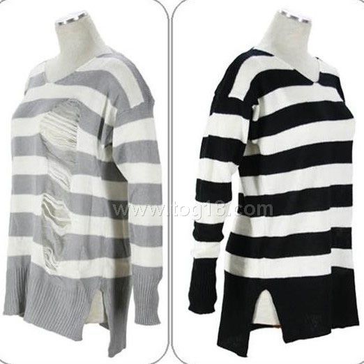 下擺不規則寬條紋毛衣