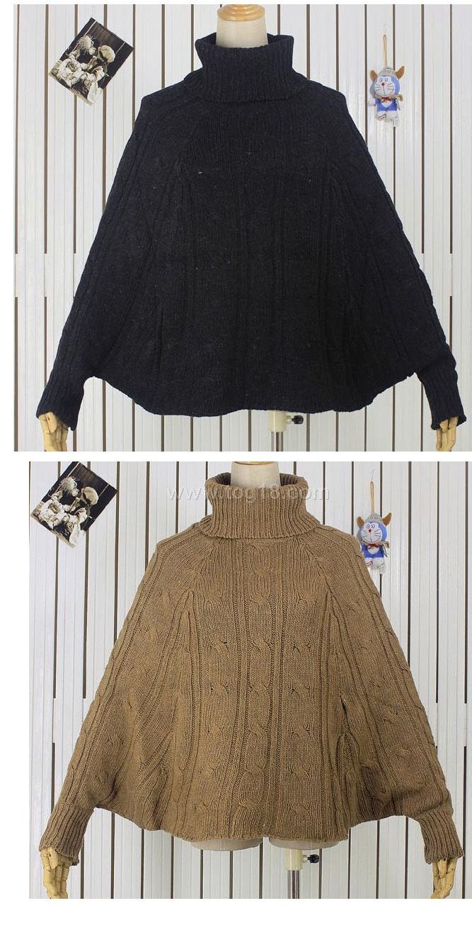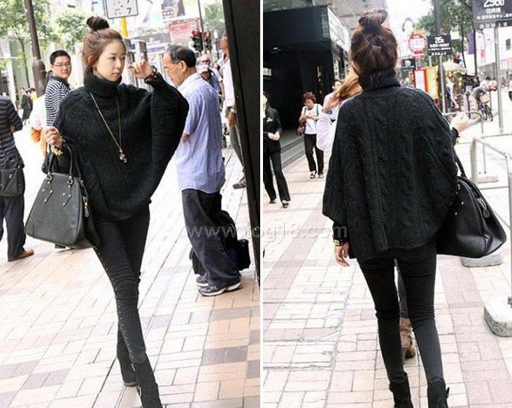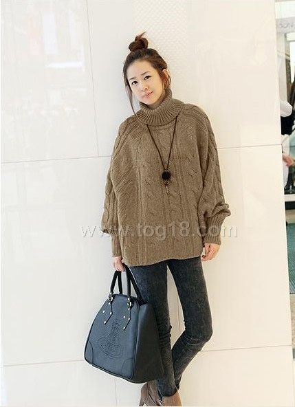 韓版李孝利高領麻花大蝙蝠袖毛衣