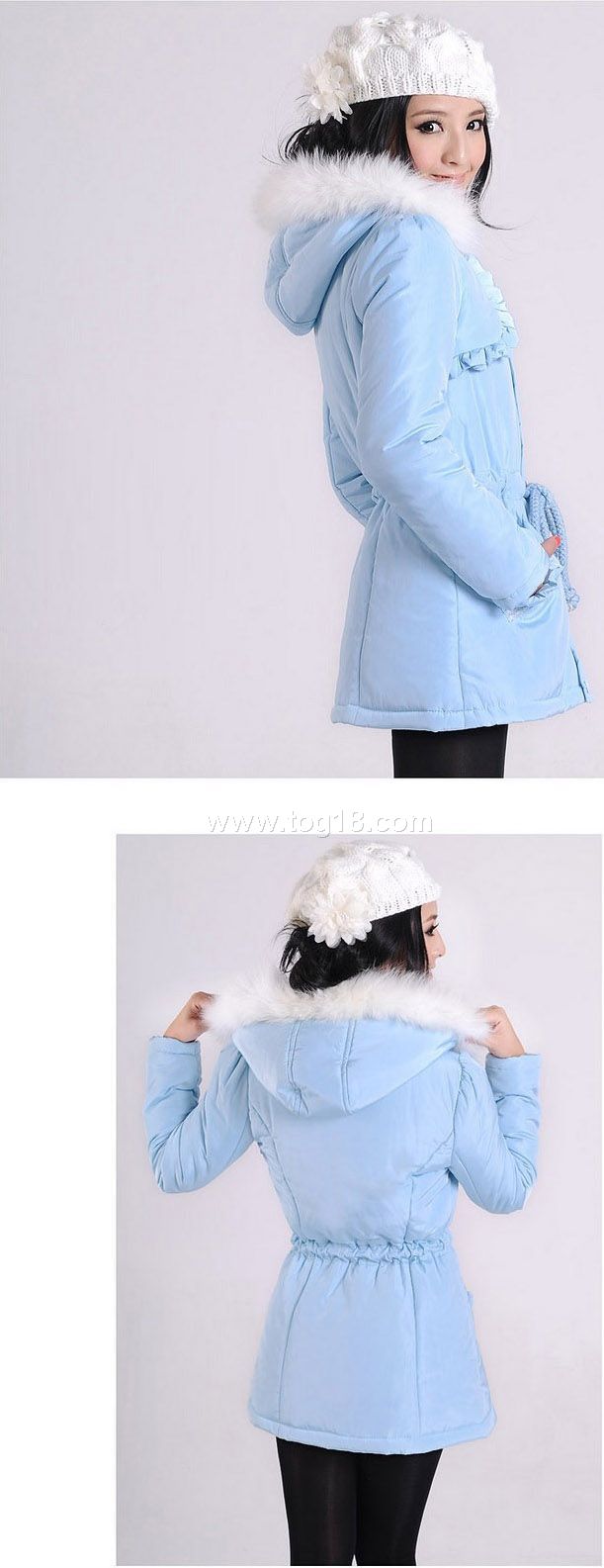 1.此款棉衣有裡襯,填充物為雲絲棉保暖性好;真口袋。狐狸毛帽子不可拆.