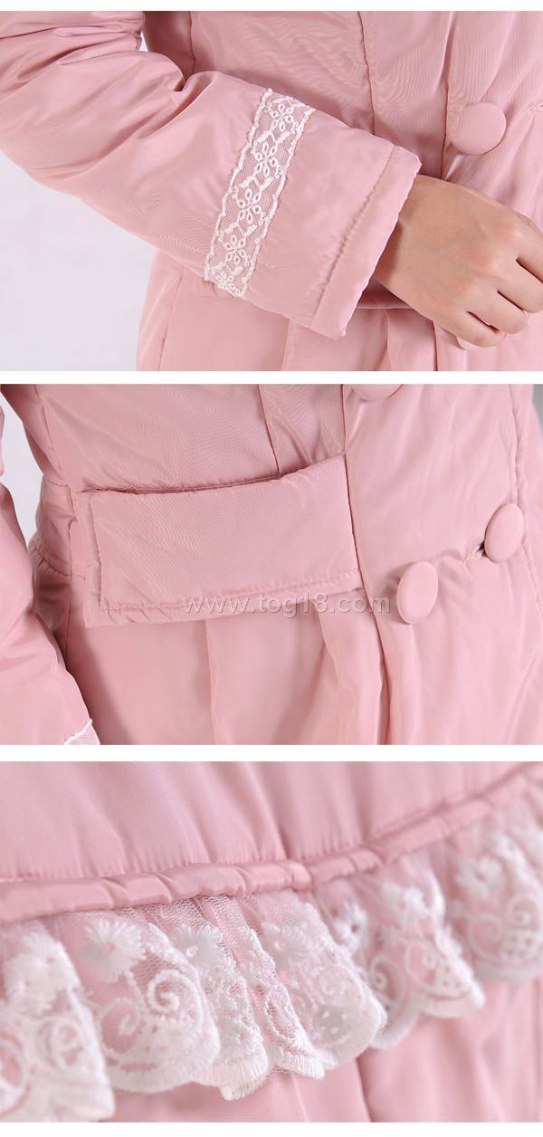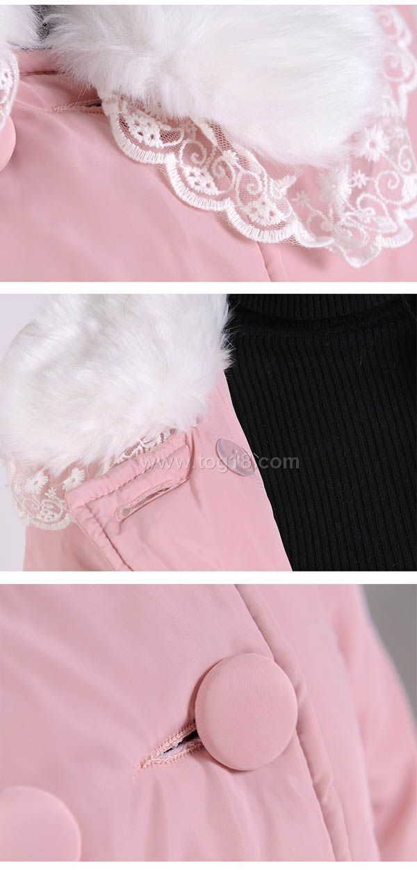 日韓甜美公主系蕾絲兔毛領保暖棉衣大衣