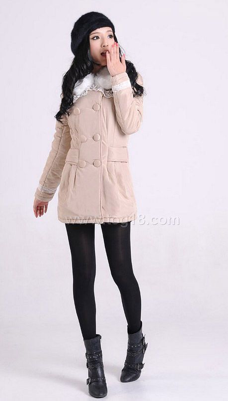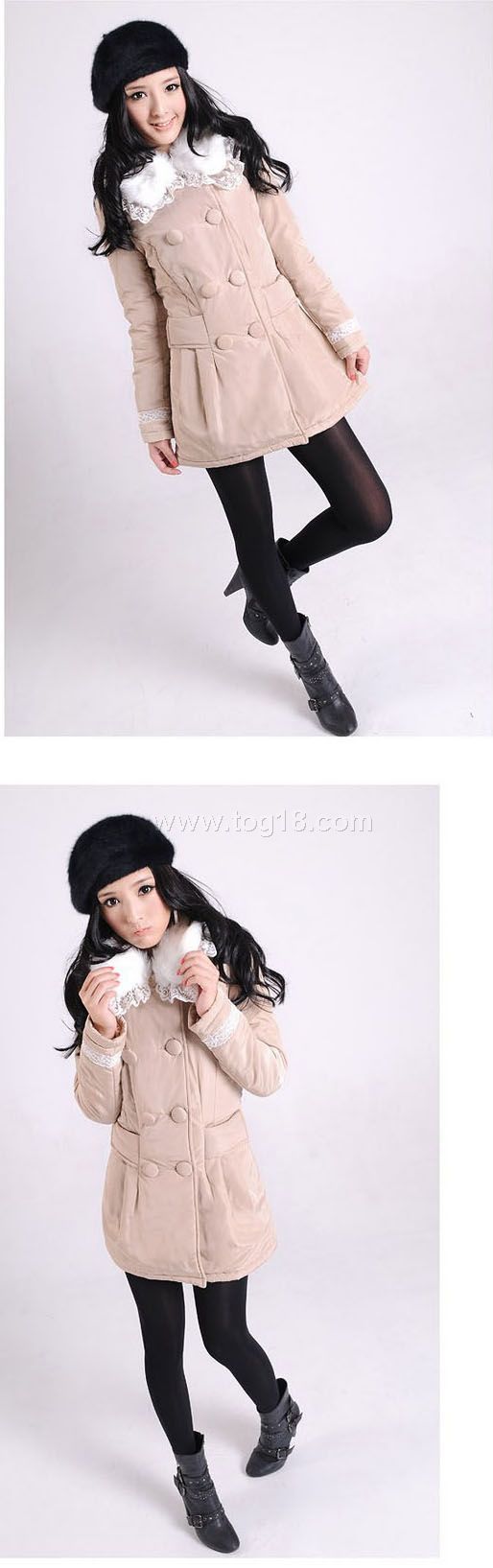 1.此款棉衣有裡襯,填充物為雲絲棉保暖性好;真口袋。白色仿兔毛領可拆.