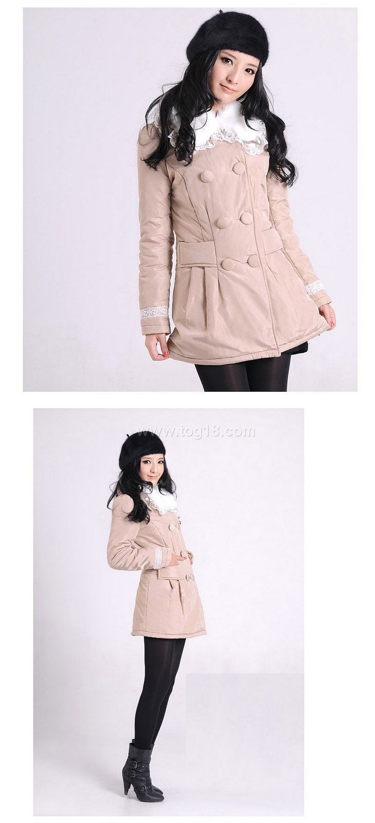 日韓甜美公主系蕾絲兔毛領保暖棉衣大衣
