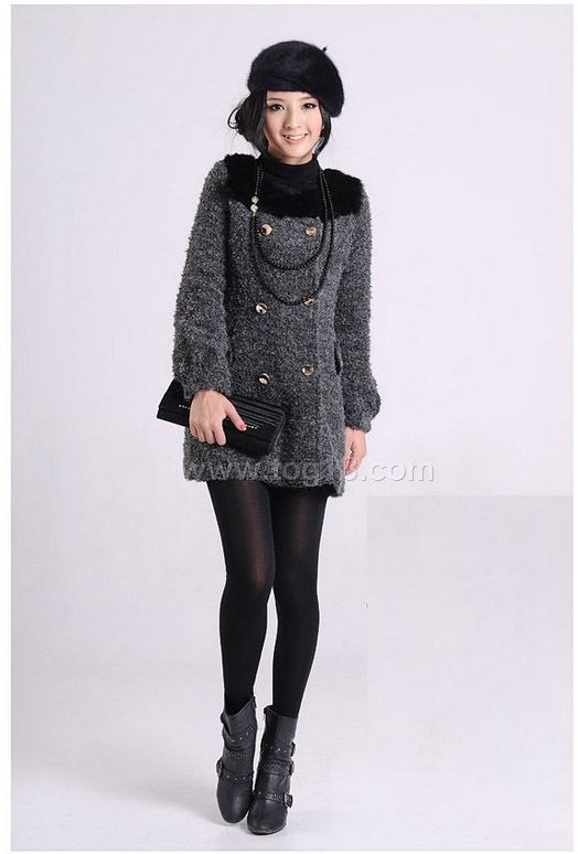 1.此款大衣面料新穎,獨特,高檔;有裡襯,;真口袋。毛領不可拆.