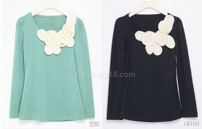 款式說明:可愛的淑女風T恤,手工毛線勾花,春季百搭的簡潔款~