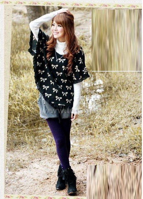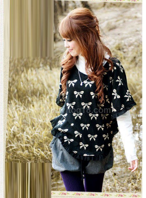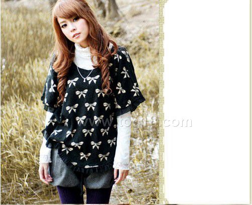 新款蝴蝶結圖案針織斗篷罩衫外套