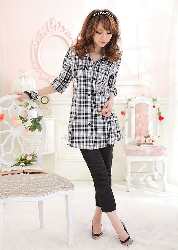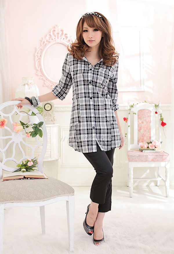 女裝流行格子連帽兩用袖襯衫 (黑色)