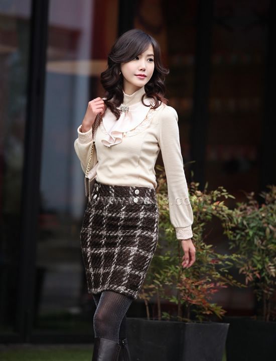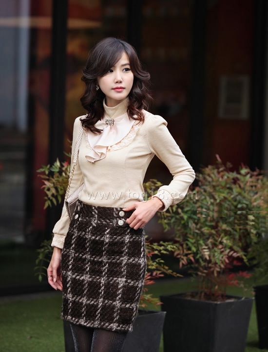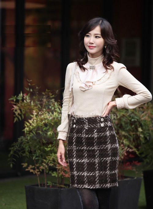 面料:羊毛混紡+蕾絲+色丁