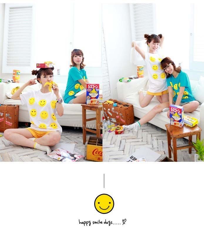女裝-新款超可愛九個小笑臉T恤