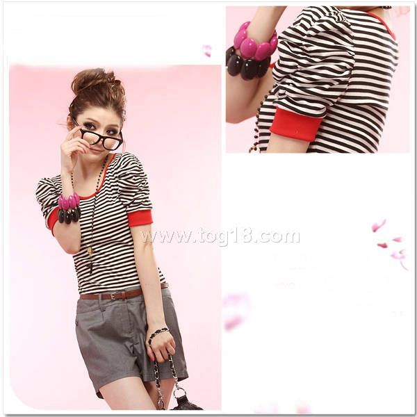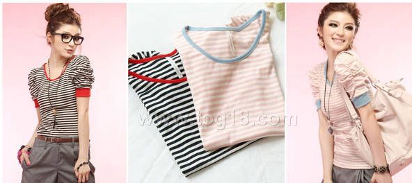 衣櫥必備自留款 條紋泡泡袖公主T恤