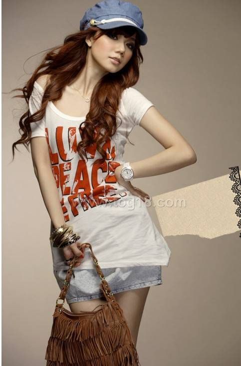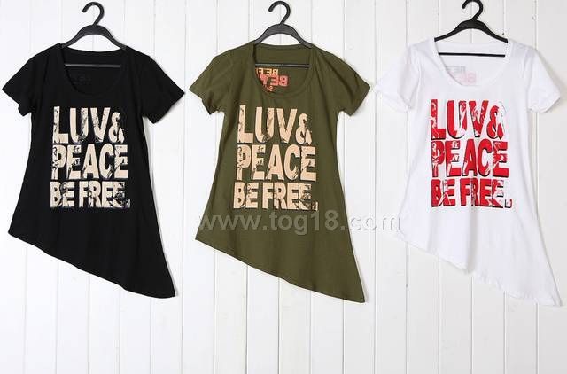 英倫風格 時尚性感主流不規則字母棉長T