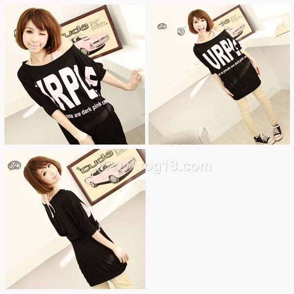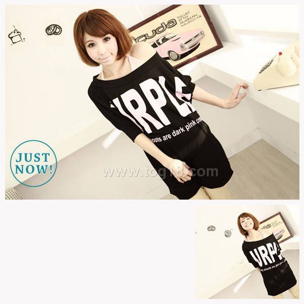 一字領 百搭字母棉T